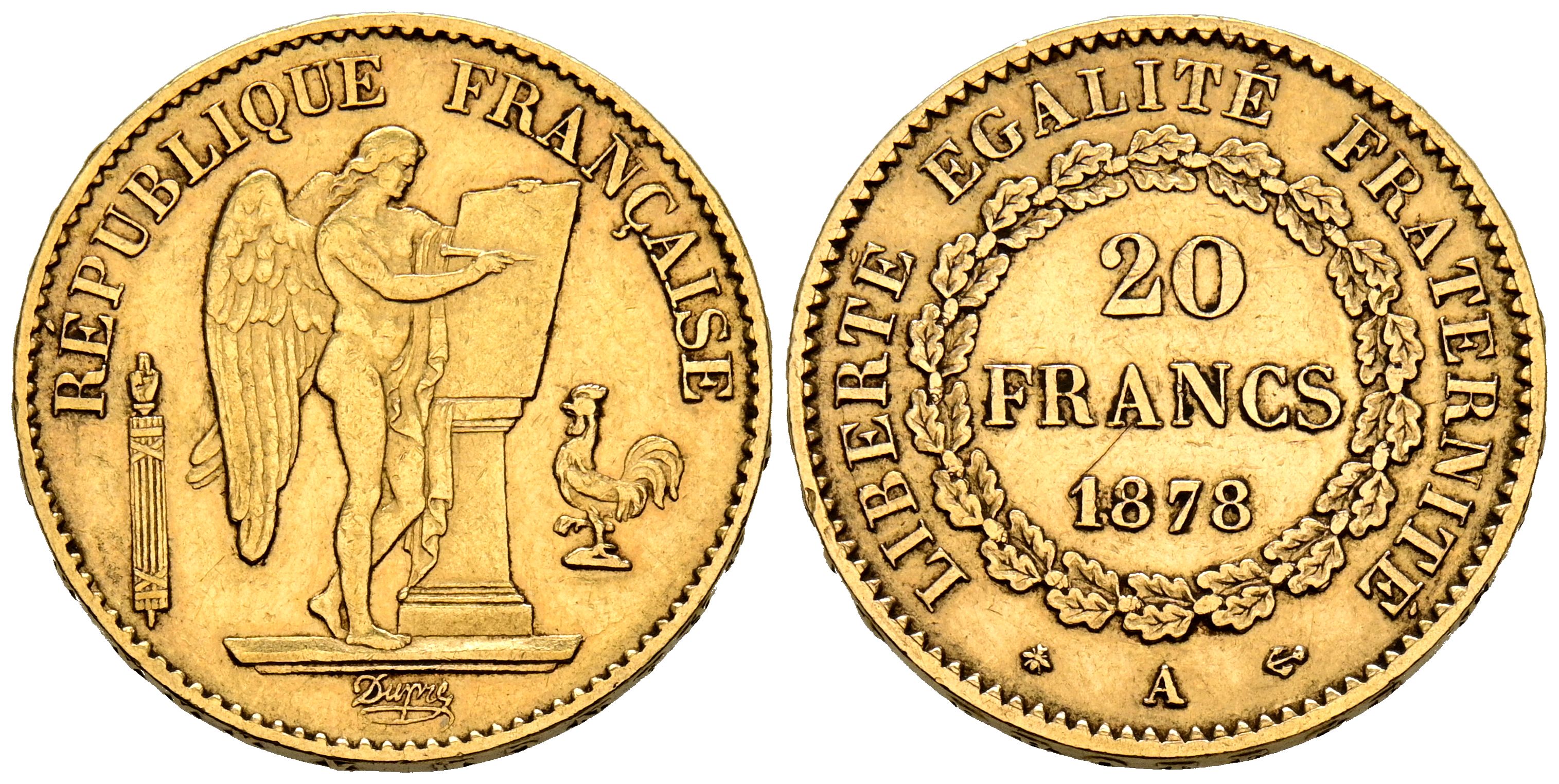 FRANCIA, III República. 20 Francos. (Au. 6,45g/21mm). 1878. París A. (Km#825). MBC.