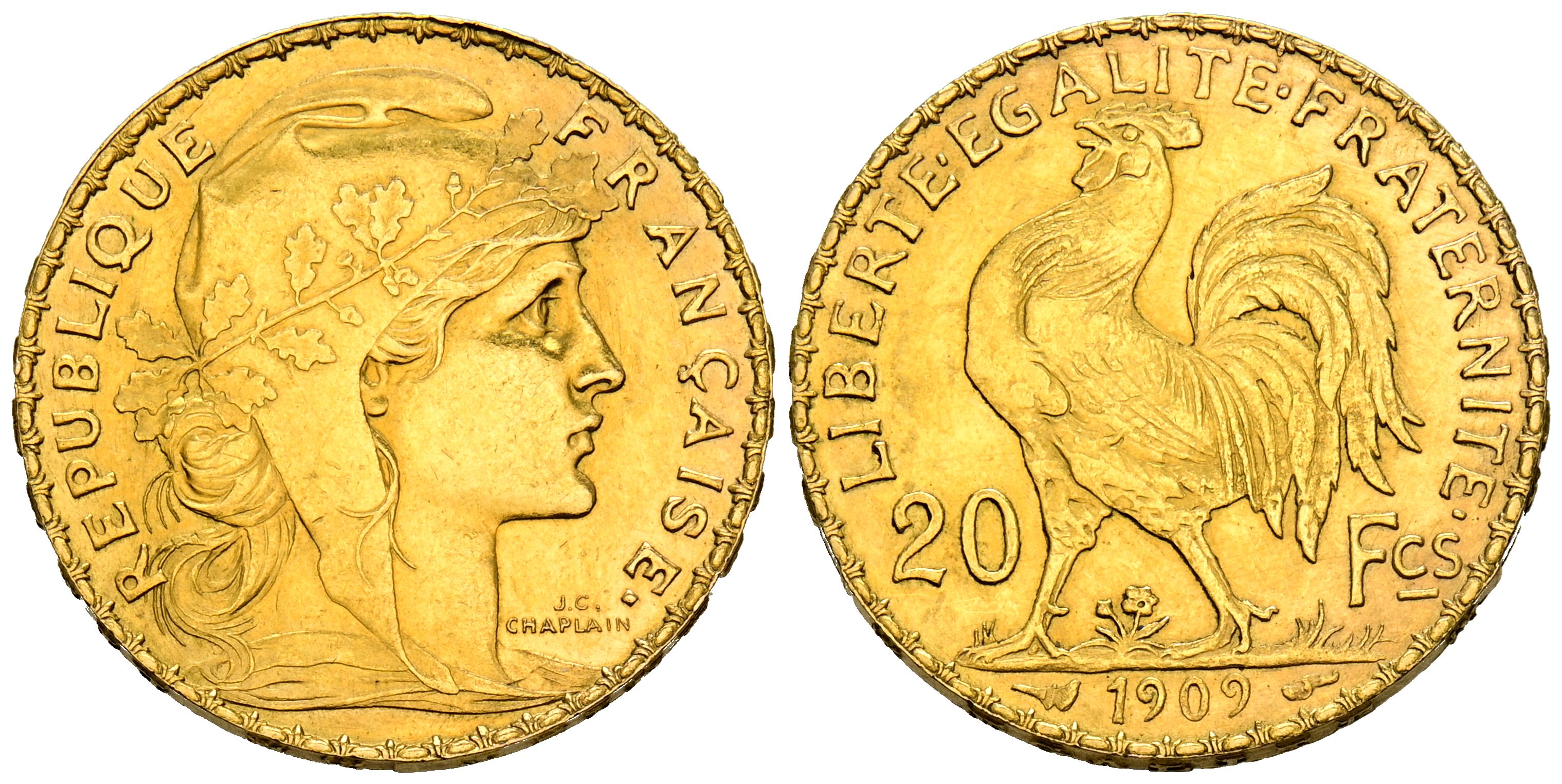 FRANCIA, III República. 20 Francos. (Au. 6,43g/21mm). 1909. (Km#857). EBC.
