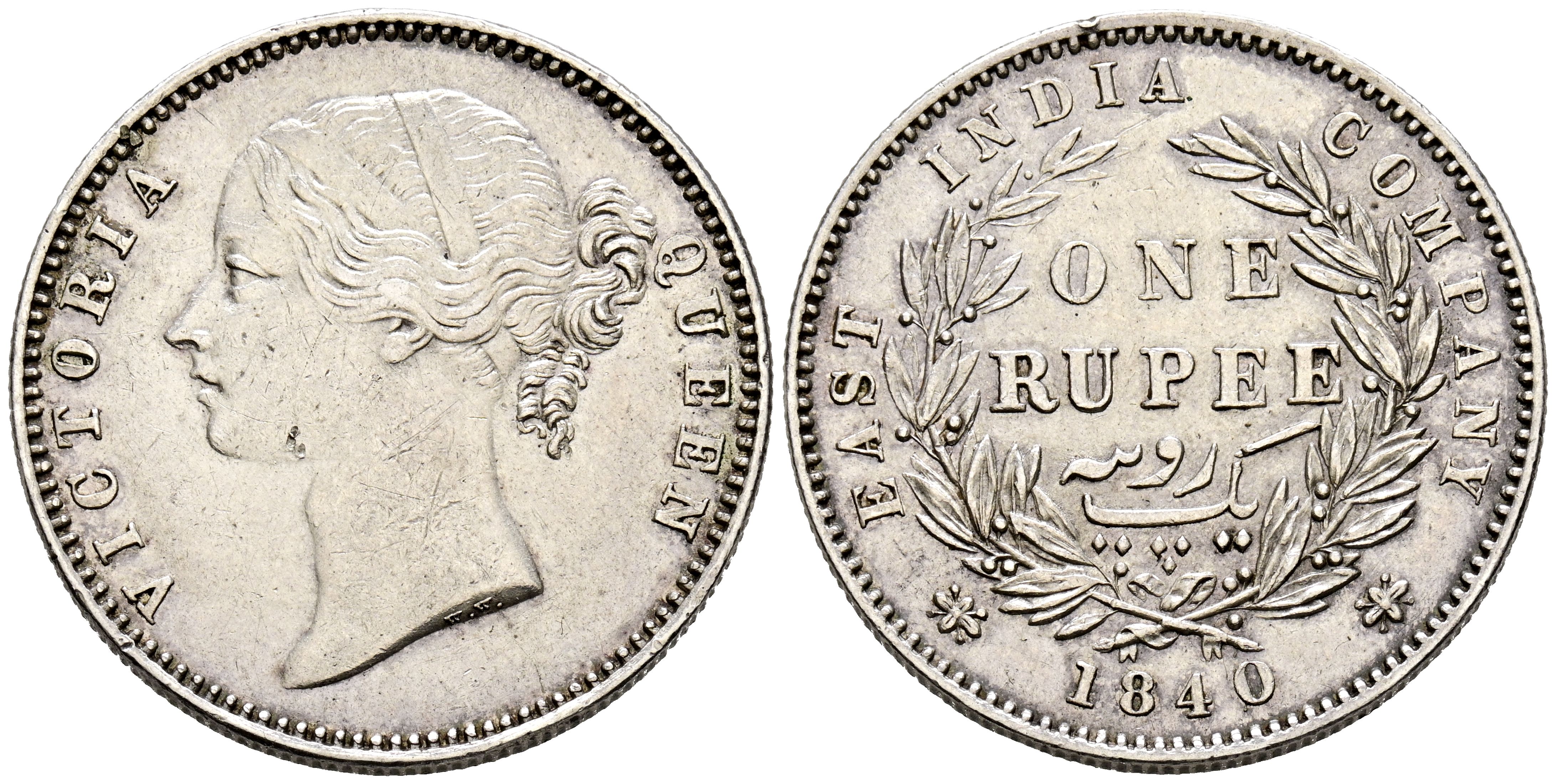 INDIA (Británica), Reina Victoria. 1 Rupia. (Ar. 11,66g/31mm). 1840. (Km#458.2). MBC+.