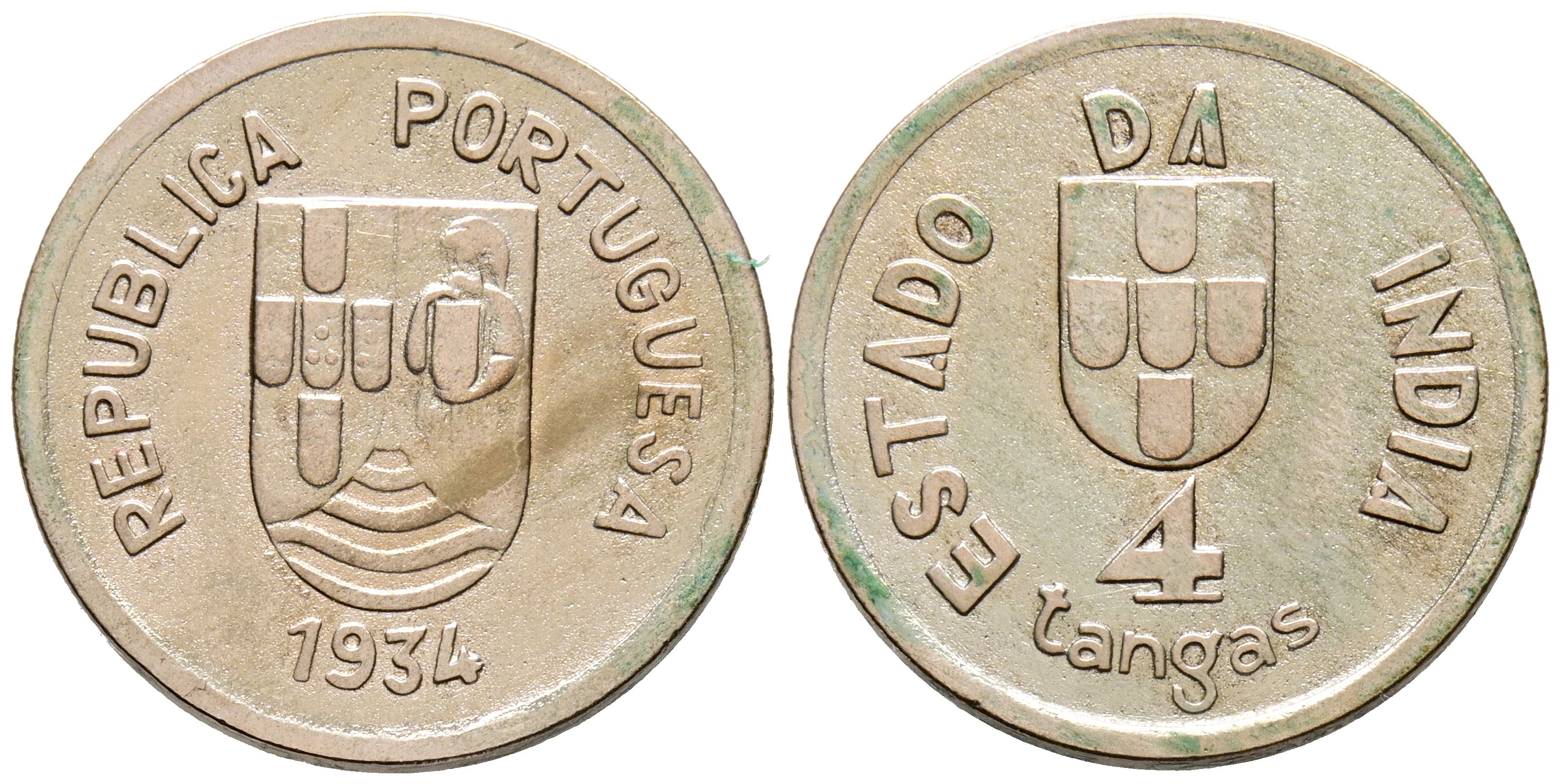 INDIA (Portuguesa). 4 Tangas. (Ae-Ni. 3,92g/23mm). 1934. (Gomes 05.01). MBC+. Escasa.