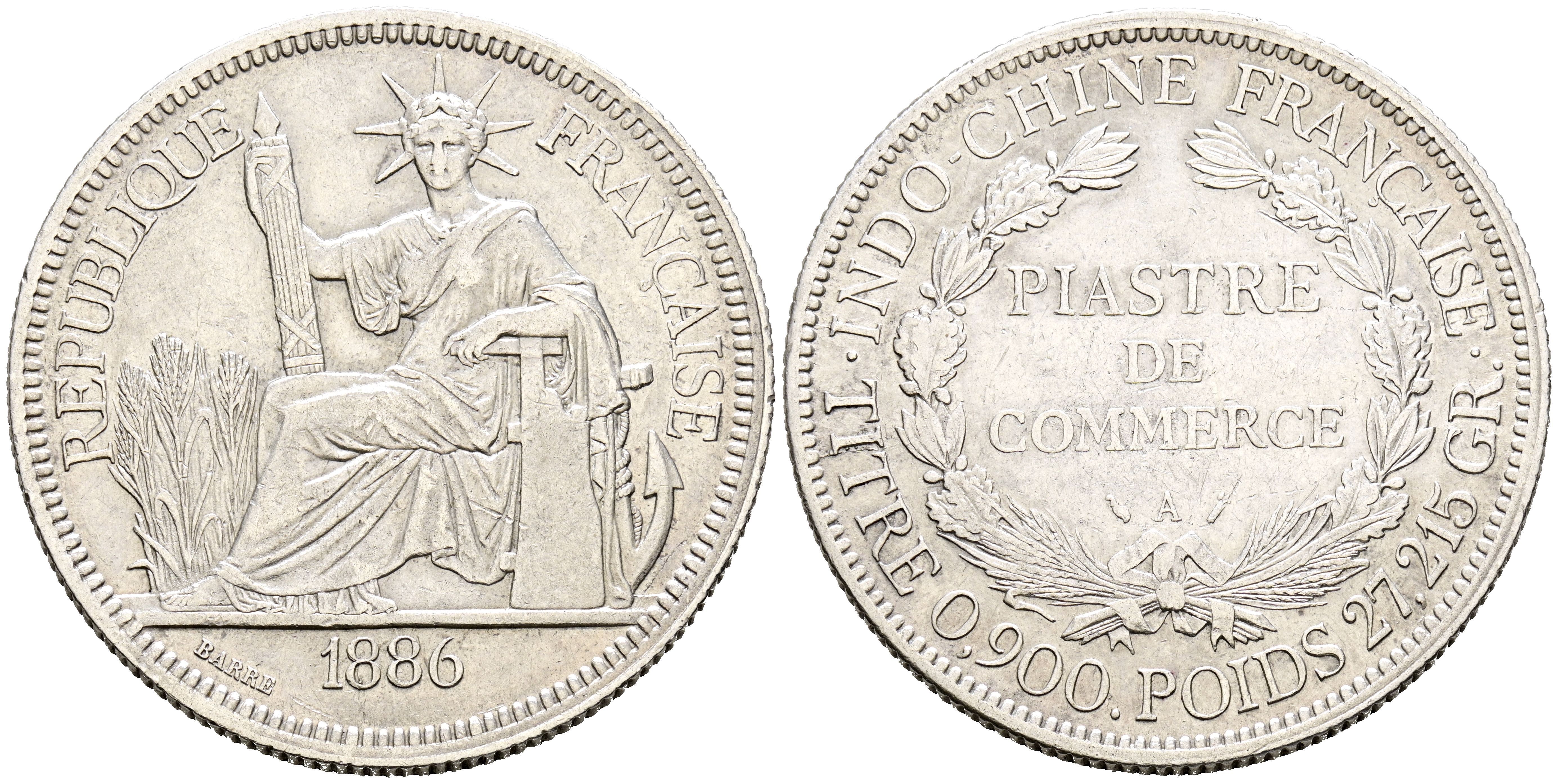 INDOCHINA (Francesa). Piastra. (Ar. 27,13g/39mm). 1886. París A. (Km#5). MBC+. Acuñación floja en reverso.