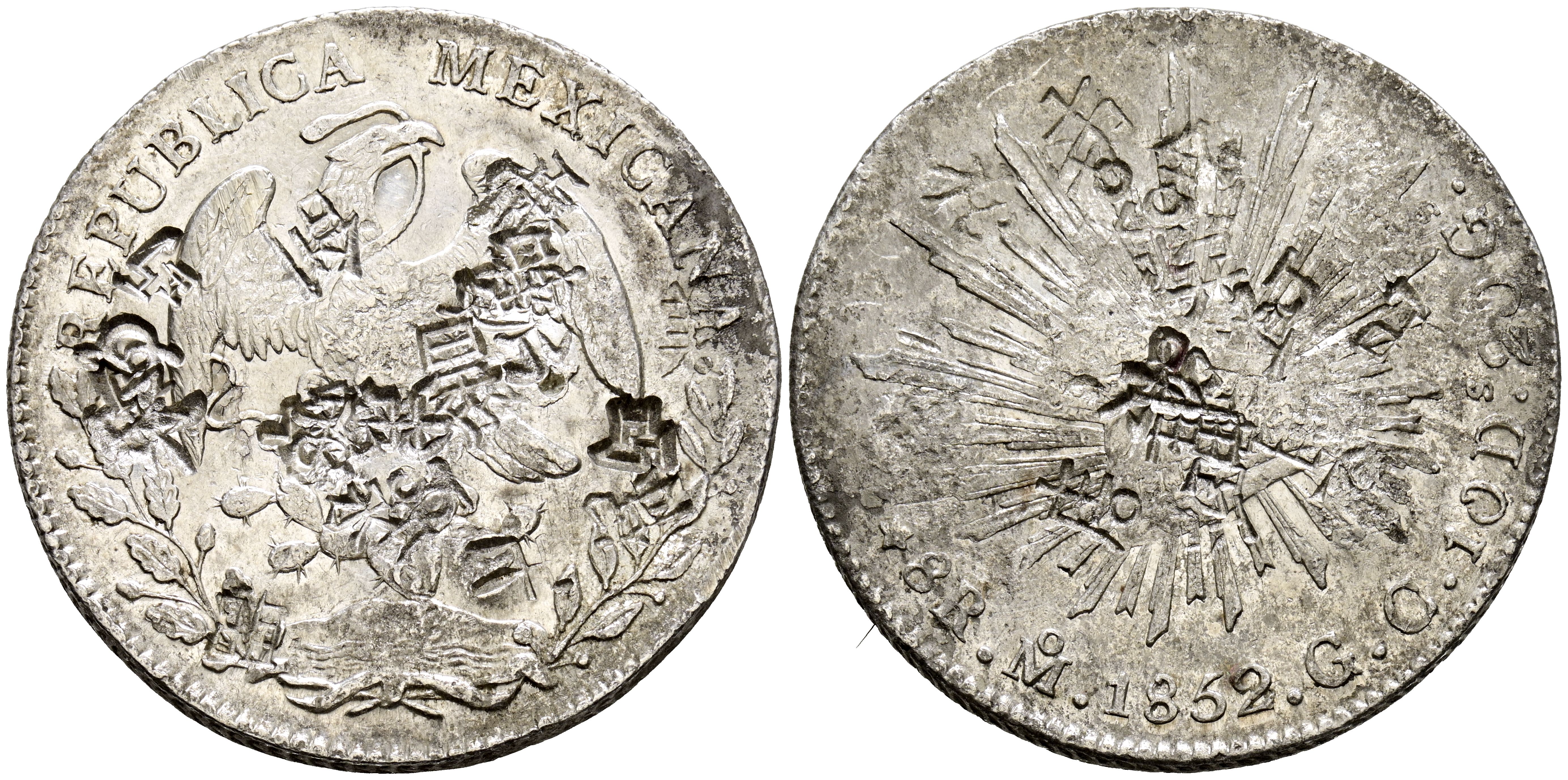 MÉXICO. 8 Reales. (Ar. 26,77g/39mm). 1852. México GC. (Km#377.10). MBC. Resellos orientales.