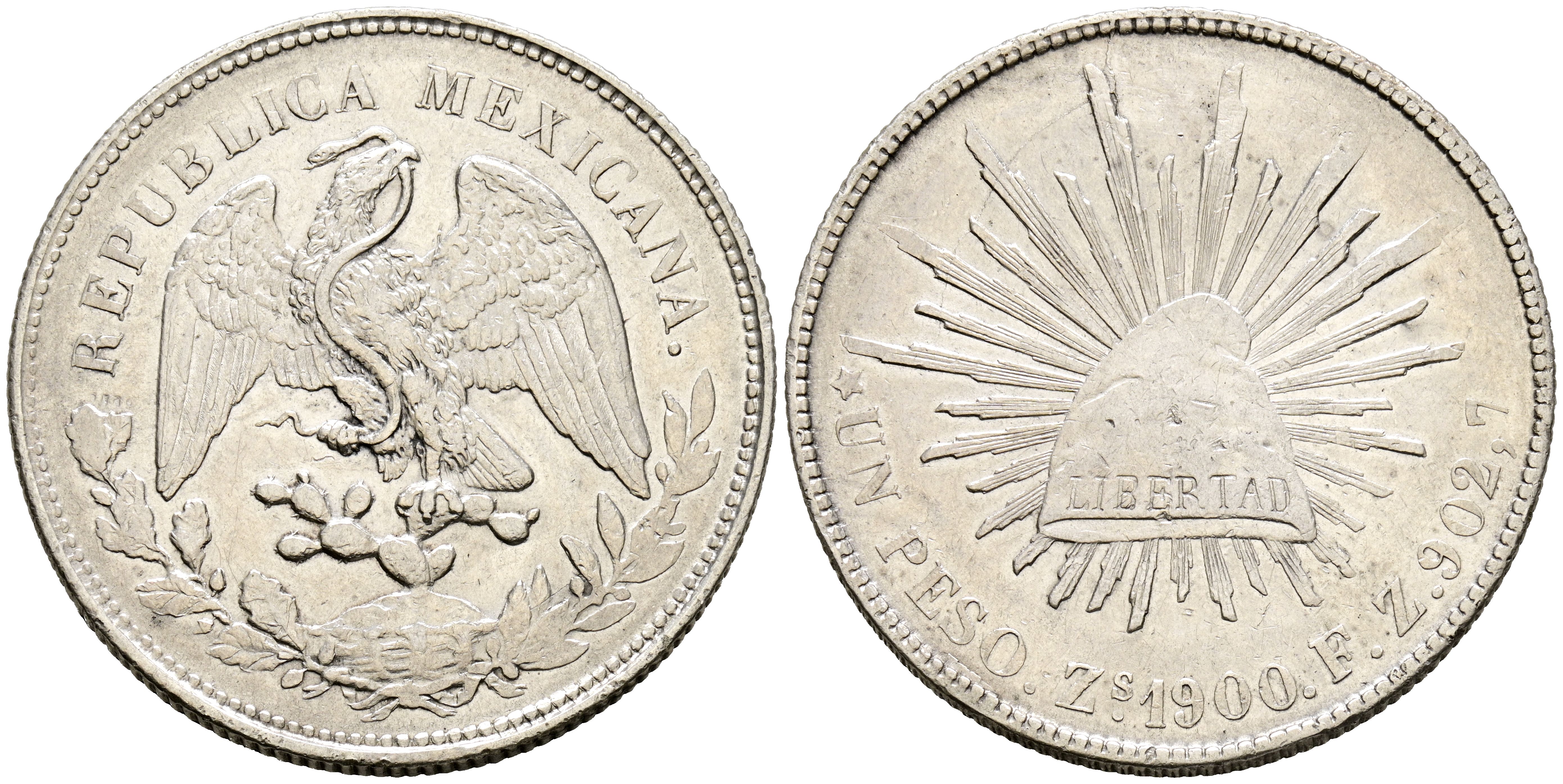 MÉXICO. 1 Peso. (Ar. 26,92g/39mm). 1900. Zacatecas FZ. (Km#409.3). MBC+/MBC.