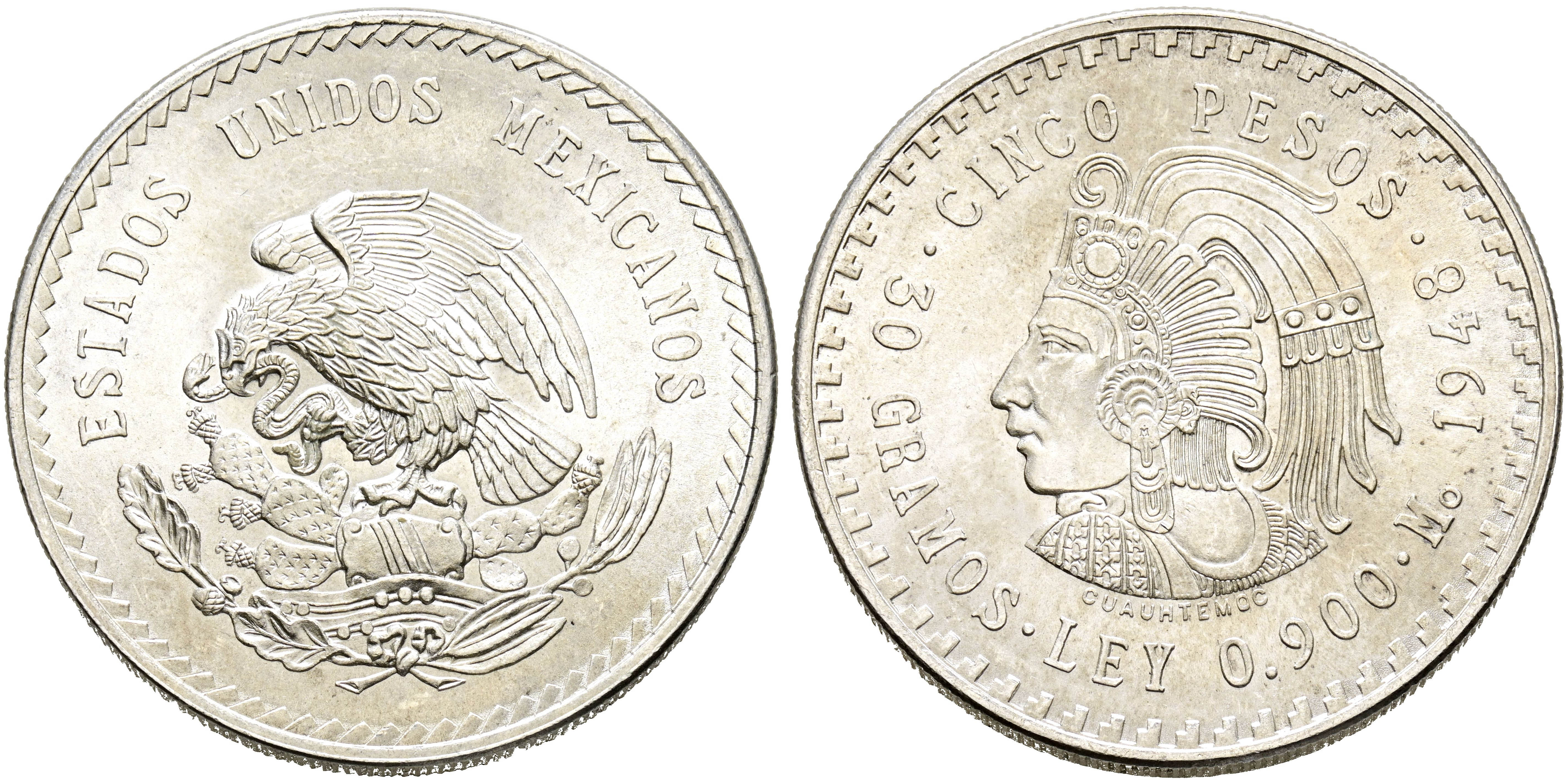 MÉXICO. 5 Pesos. (Ar. 29,95g/40mm). 1948. (Km#465). SC-.