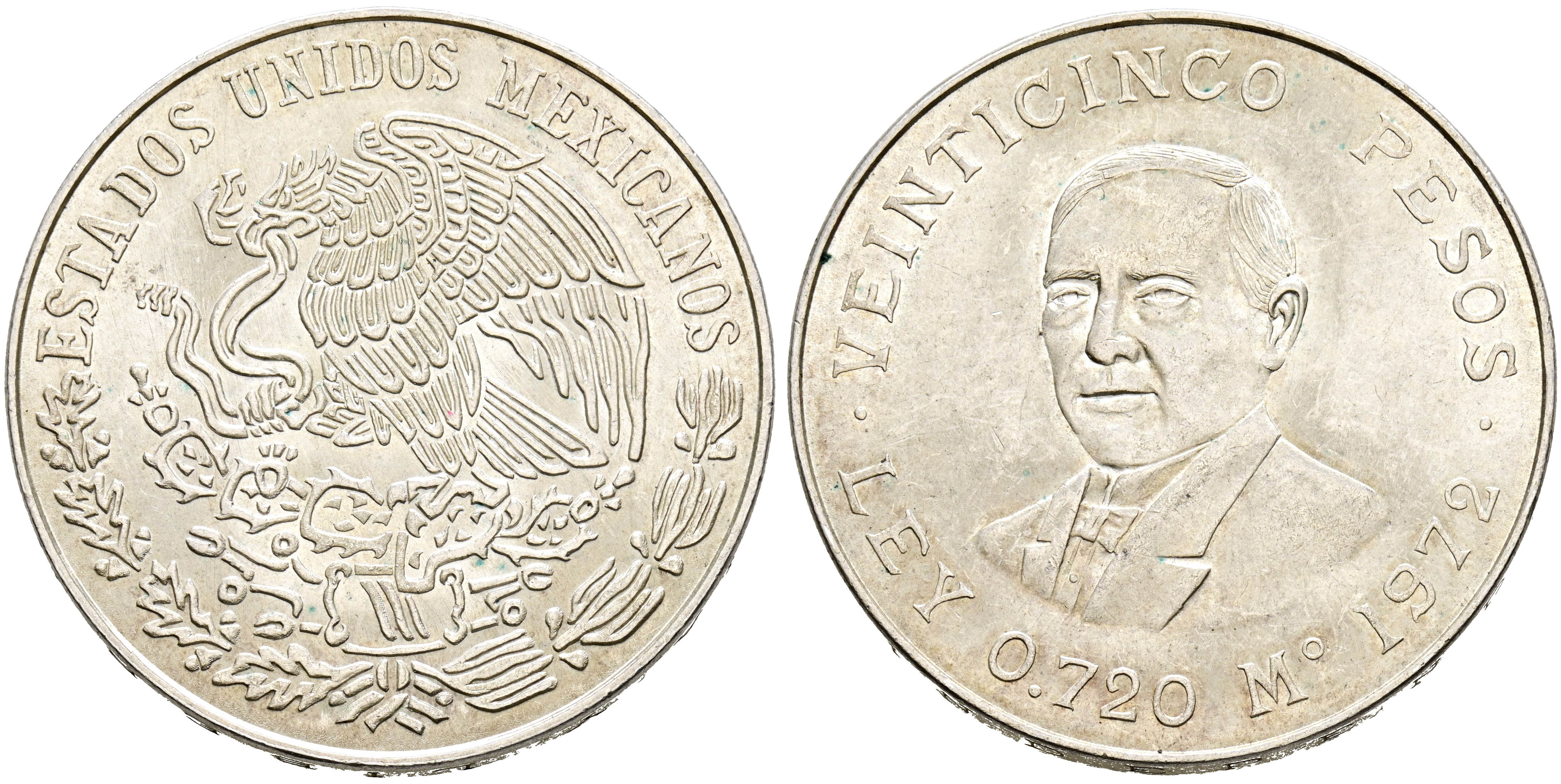 MÉXICO. 25 Pesos. (Ar. 22,52g/38mm). 1972. Centenario de la muerte de Benito Juárez. (Km#480). EBC-.
