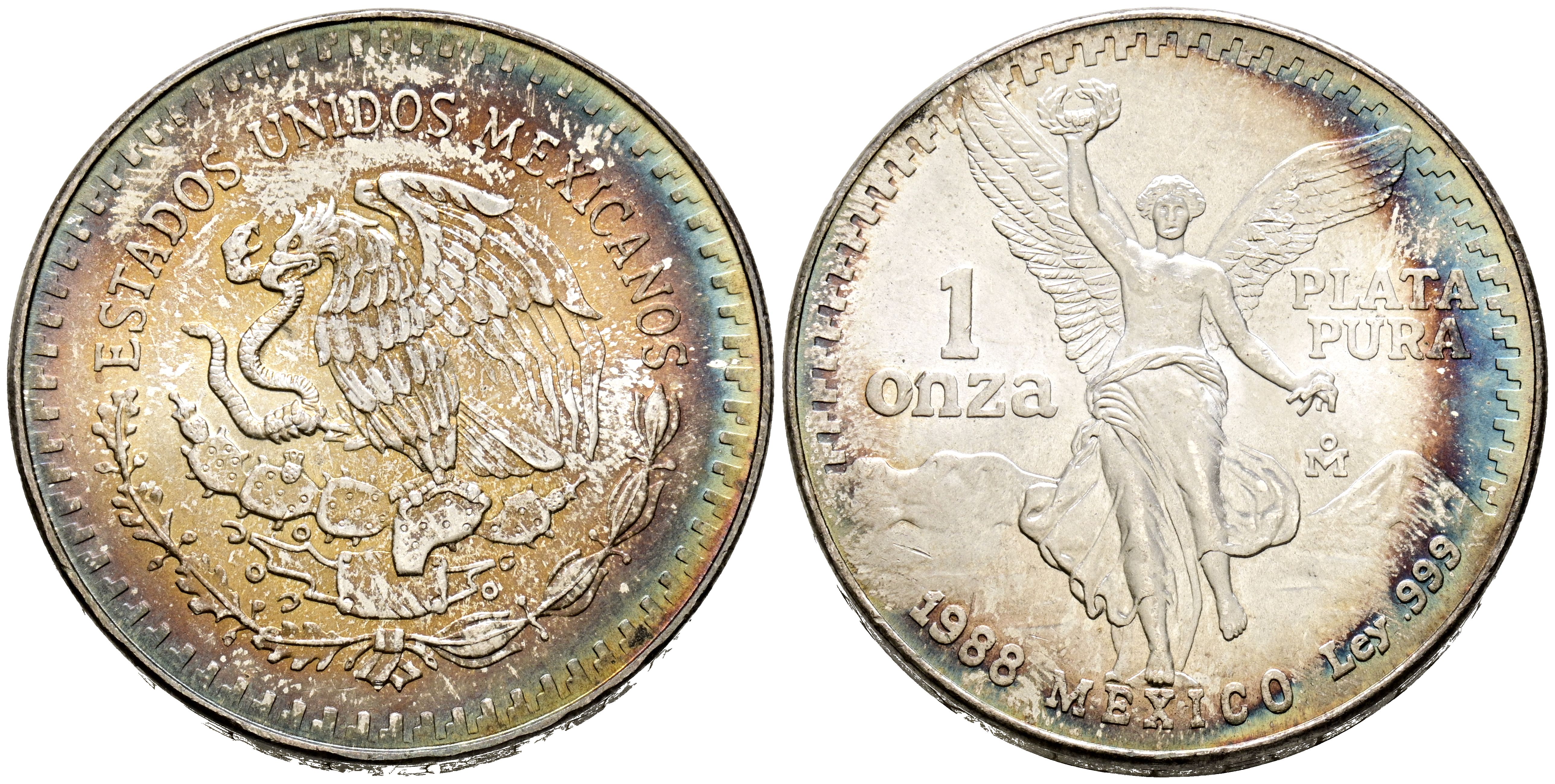 MÉXICO. 1 Onza. (Ar. 31,17g/38mm). 1988. Libertad. (Km#494.4). EBC+. Bonita pátina.