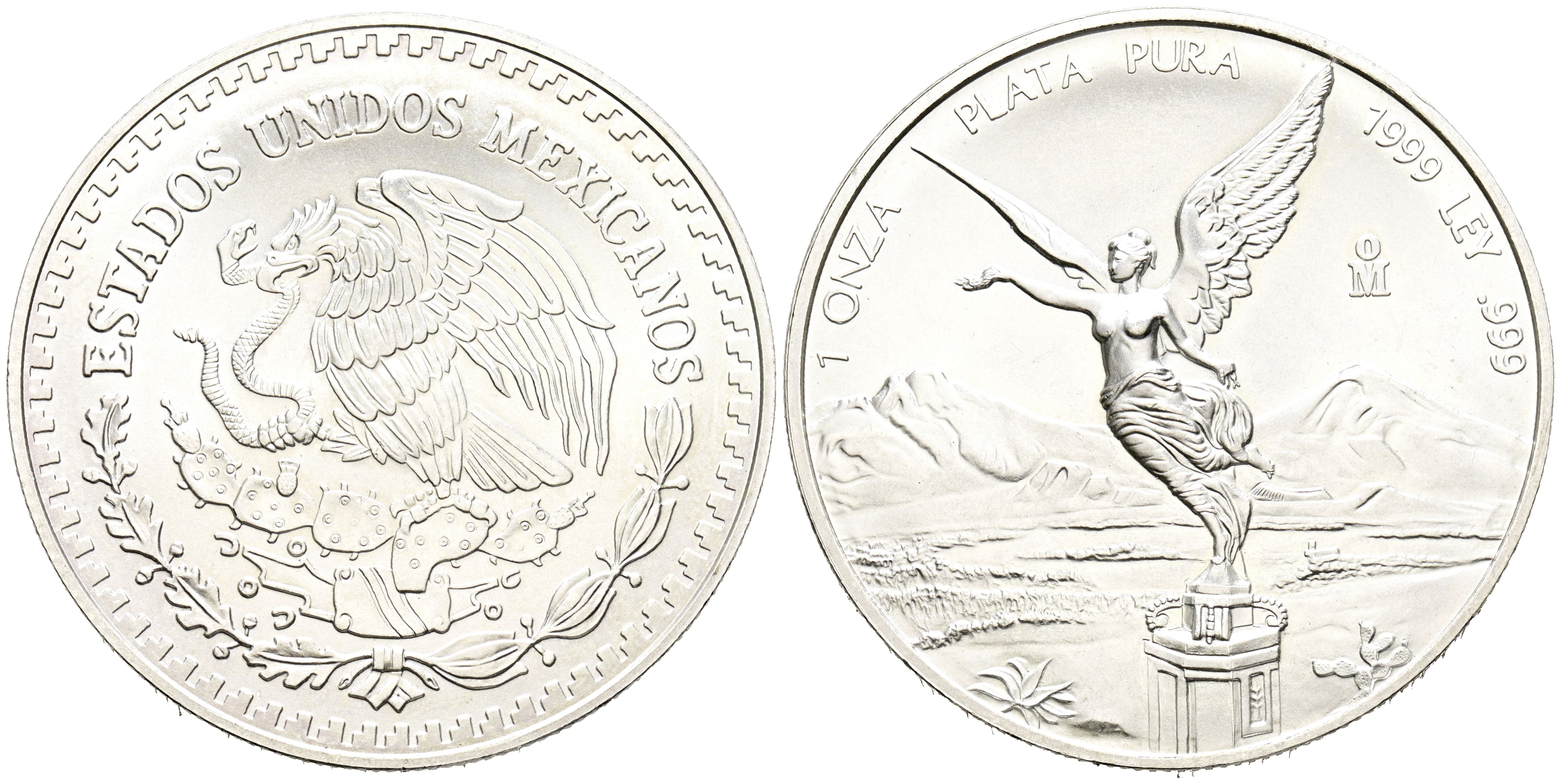 MÉXICO. 1 Onza. (Ar. 31,01g/38mm). 1999. Libertad. (Km#613). SC. Escasa.