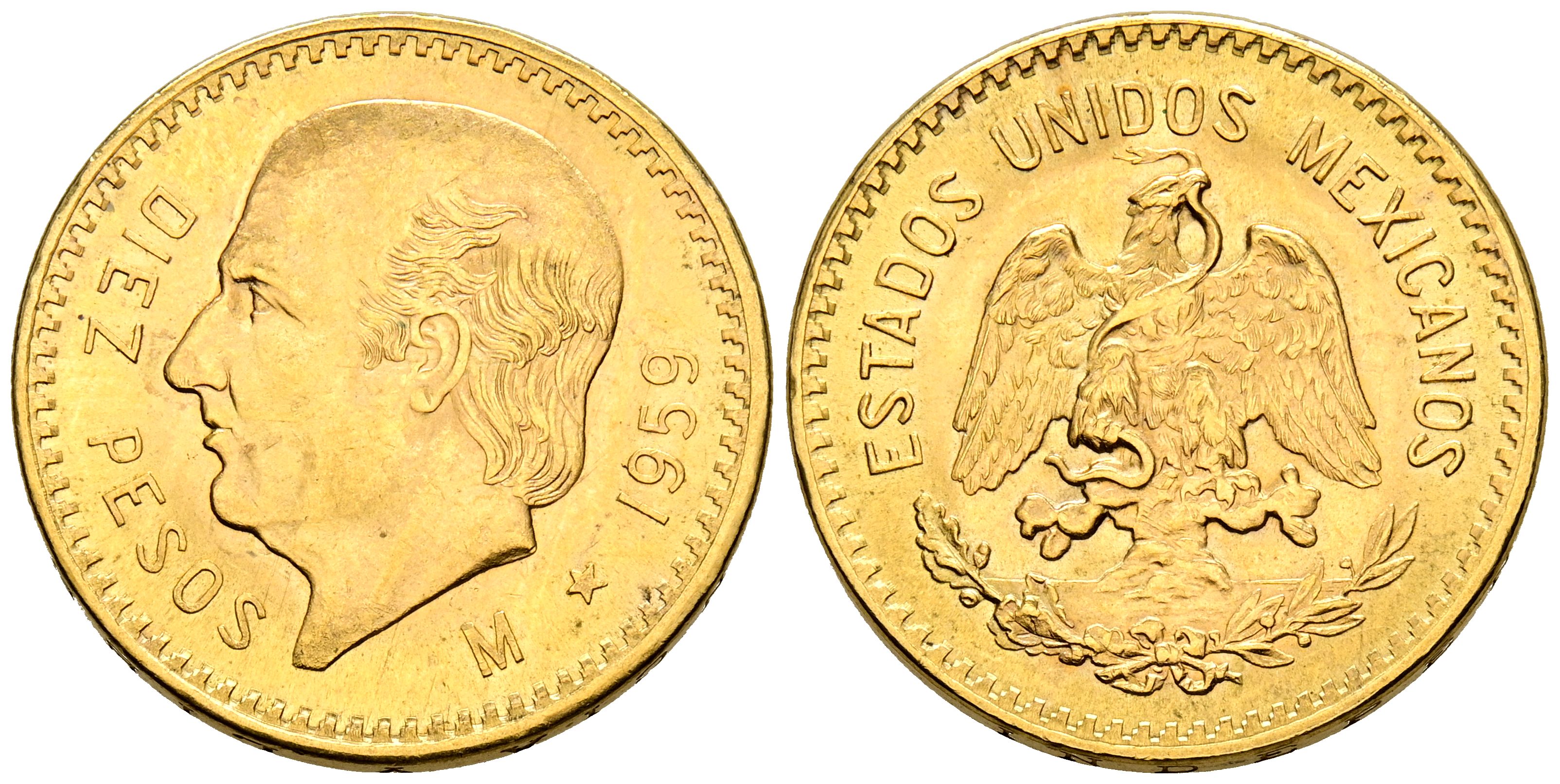 MÉXICO. 10 Pesos. (Au. 8,34g/22mm). 1959. (Km#473). EBC+.