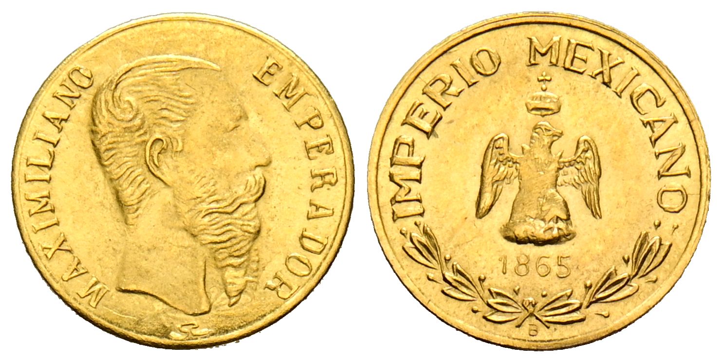 MÉXICO. Token. (Au. 0,50g/10mm). 1865. Emperador Maximiliano. Pieza de fantasía acuñado en el siglo XX. EBC.