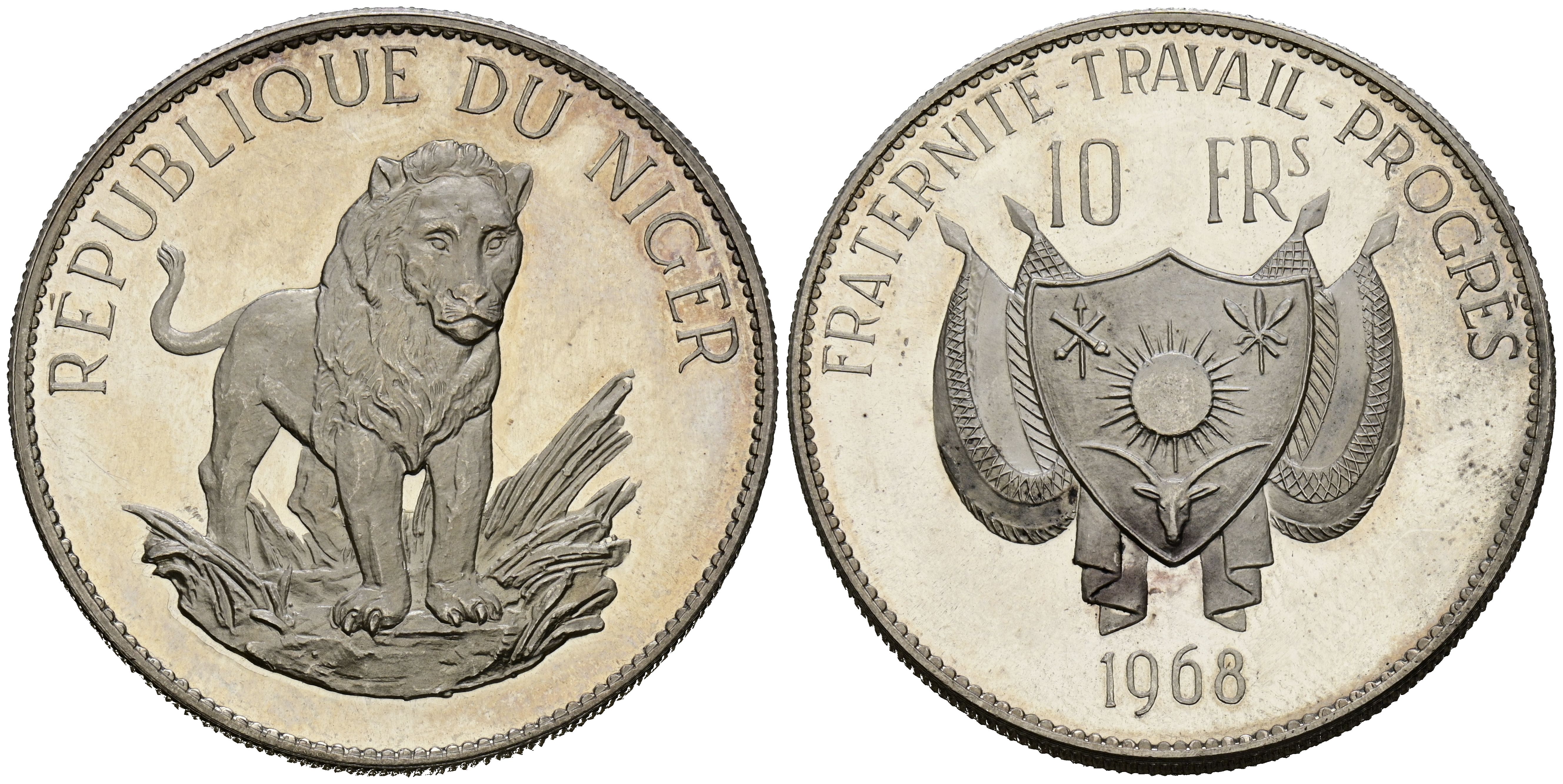 NÍGER. 10 Francos. (Ar. 19,63g/37mm). 1968. (Km#8.1). Tirada de 1.000 ejemplares. PROOF.