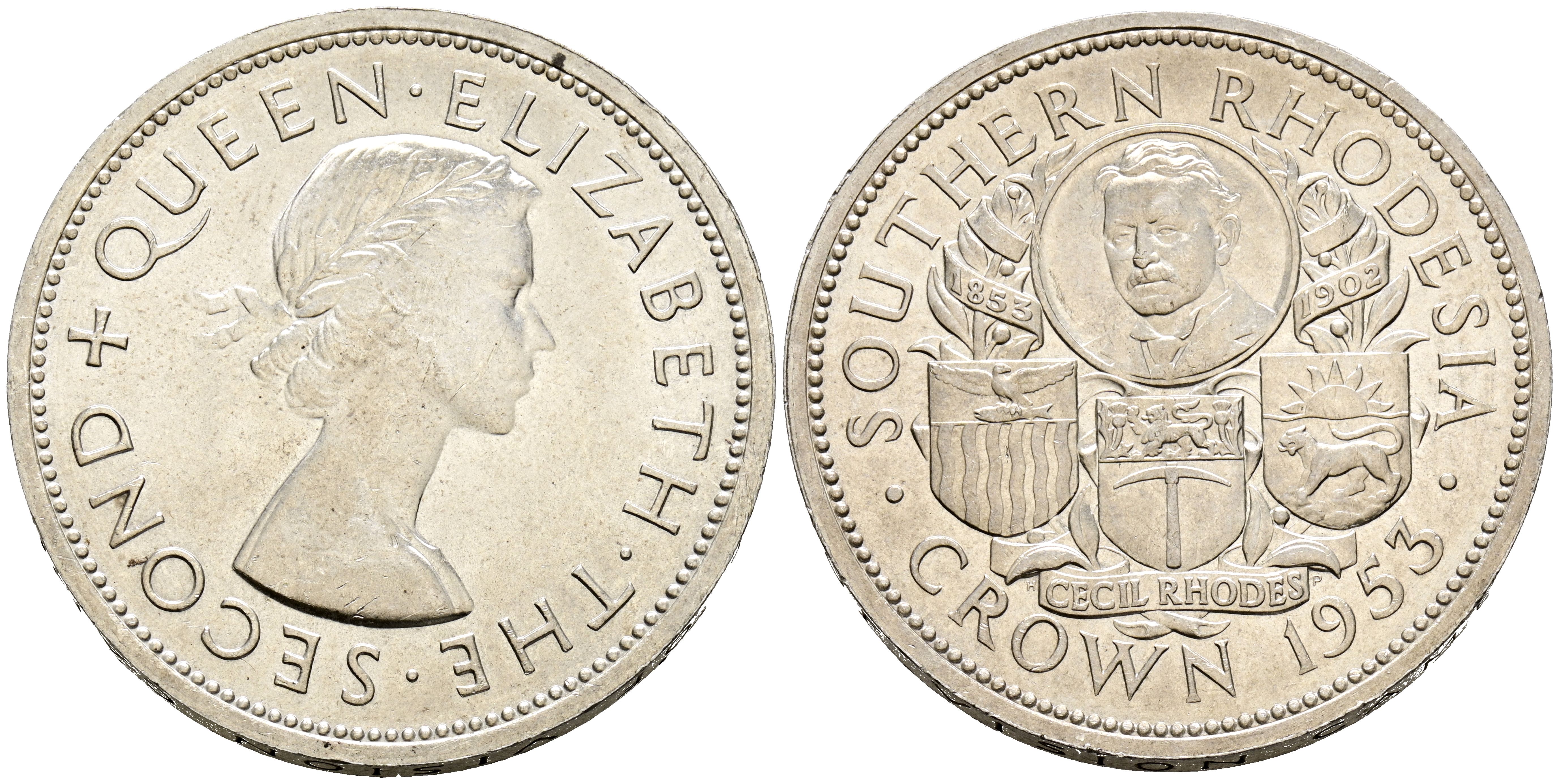 RHODESIA DEL SUR. 1 Crown. (Ar. 28,30g/39mm). 1953. Isabel II. (Km#27). EBC