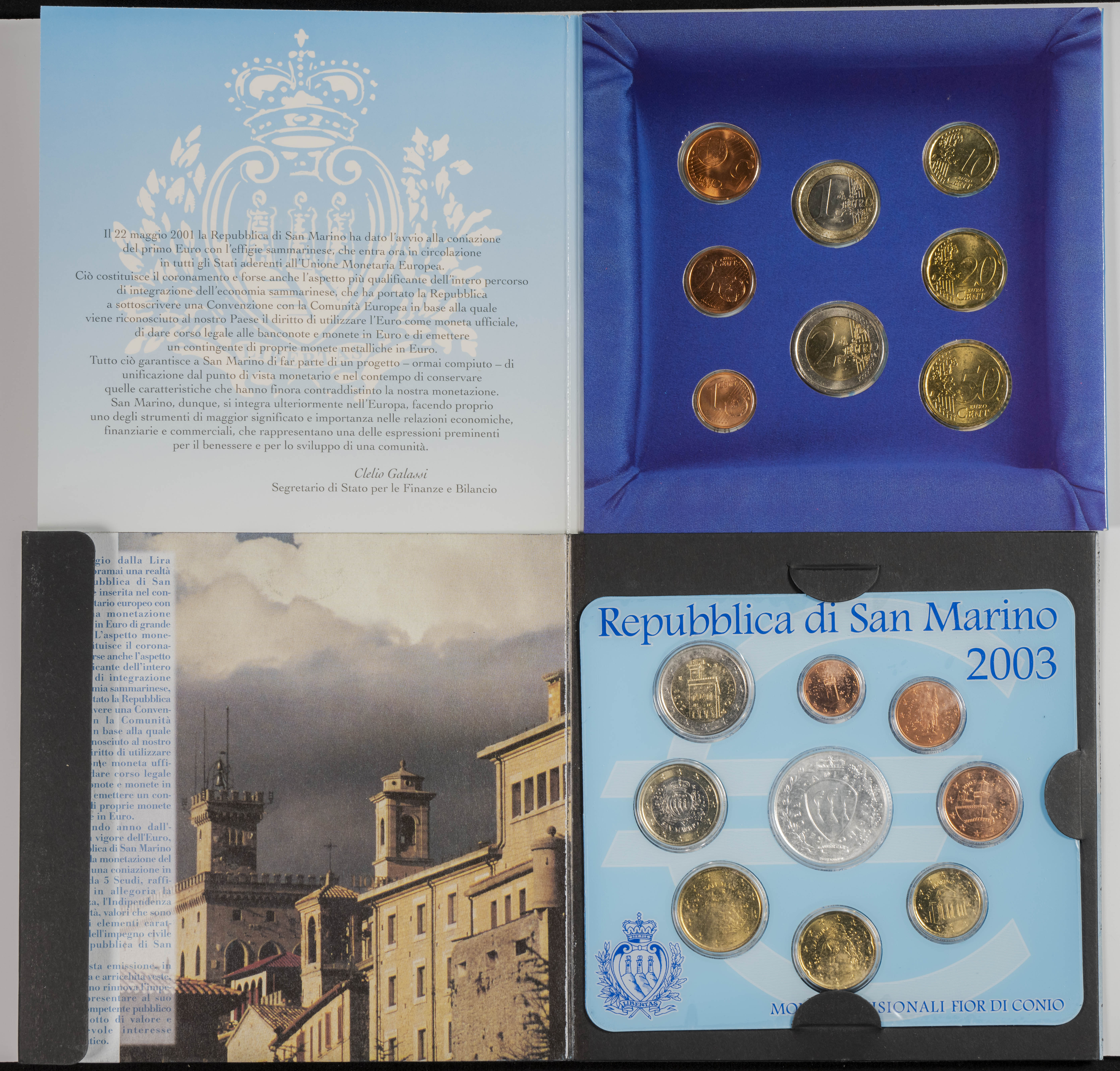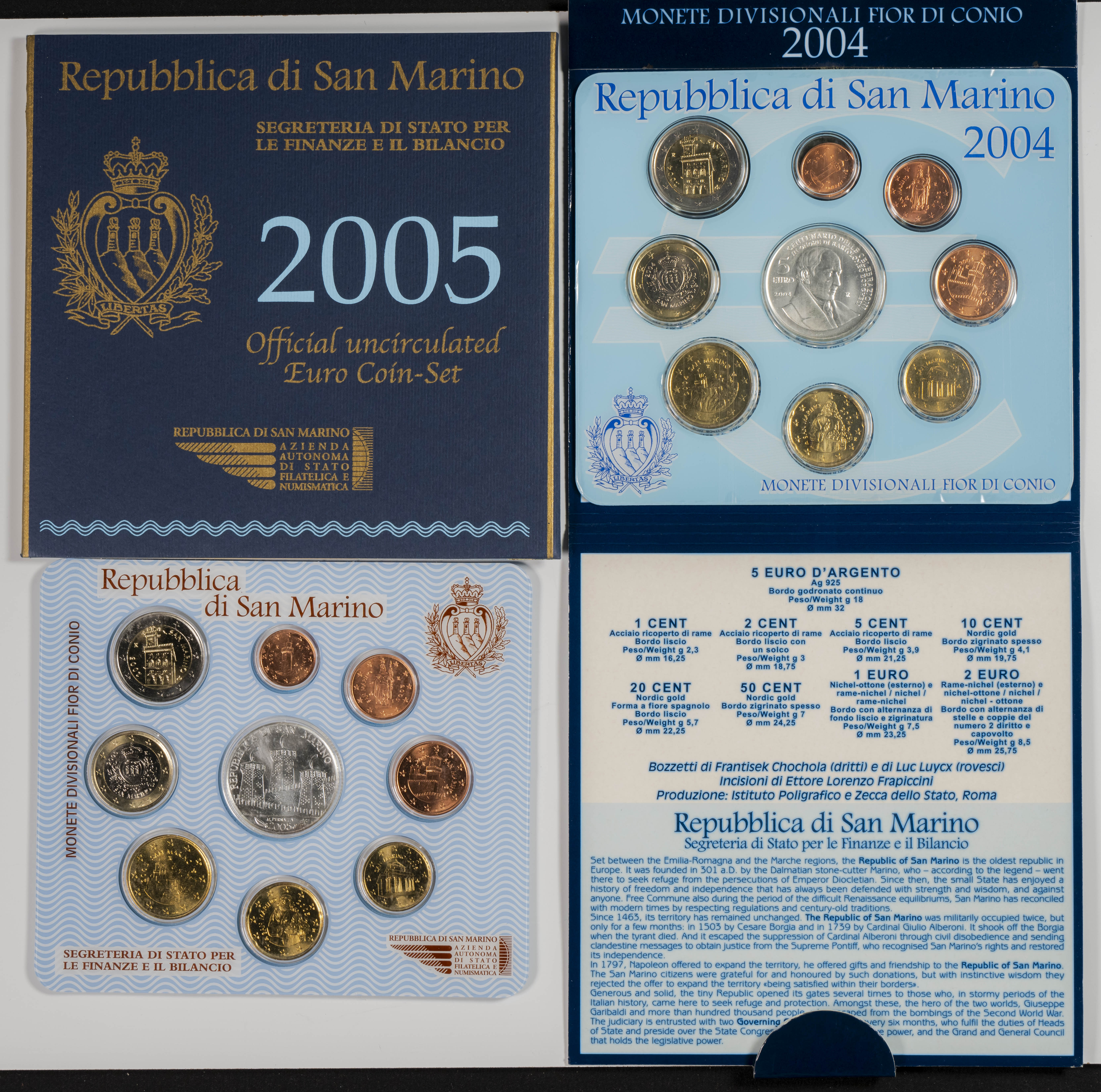 SAN MARINO. Conjunto de 4 sets con 8 valores cada uno correspondientes a los años: 2002, 2003, 2004 y 2005. SC.