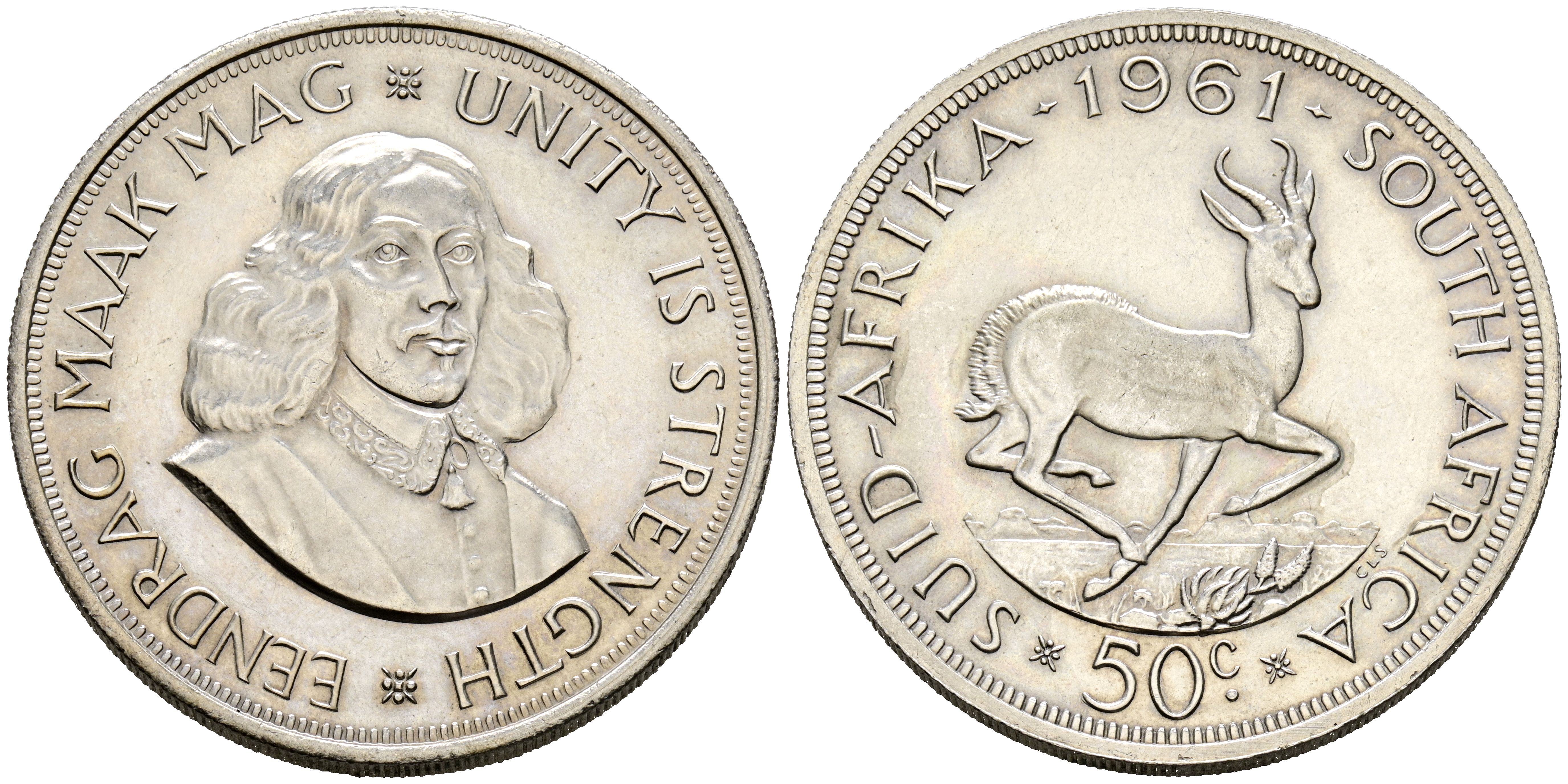 SUDÁFRICA. 50 Cents. (Ar. 28,16g/39mm). 1961. (Km#62). EBC.
