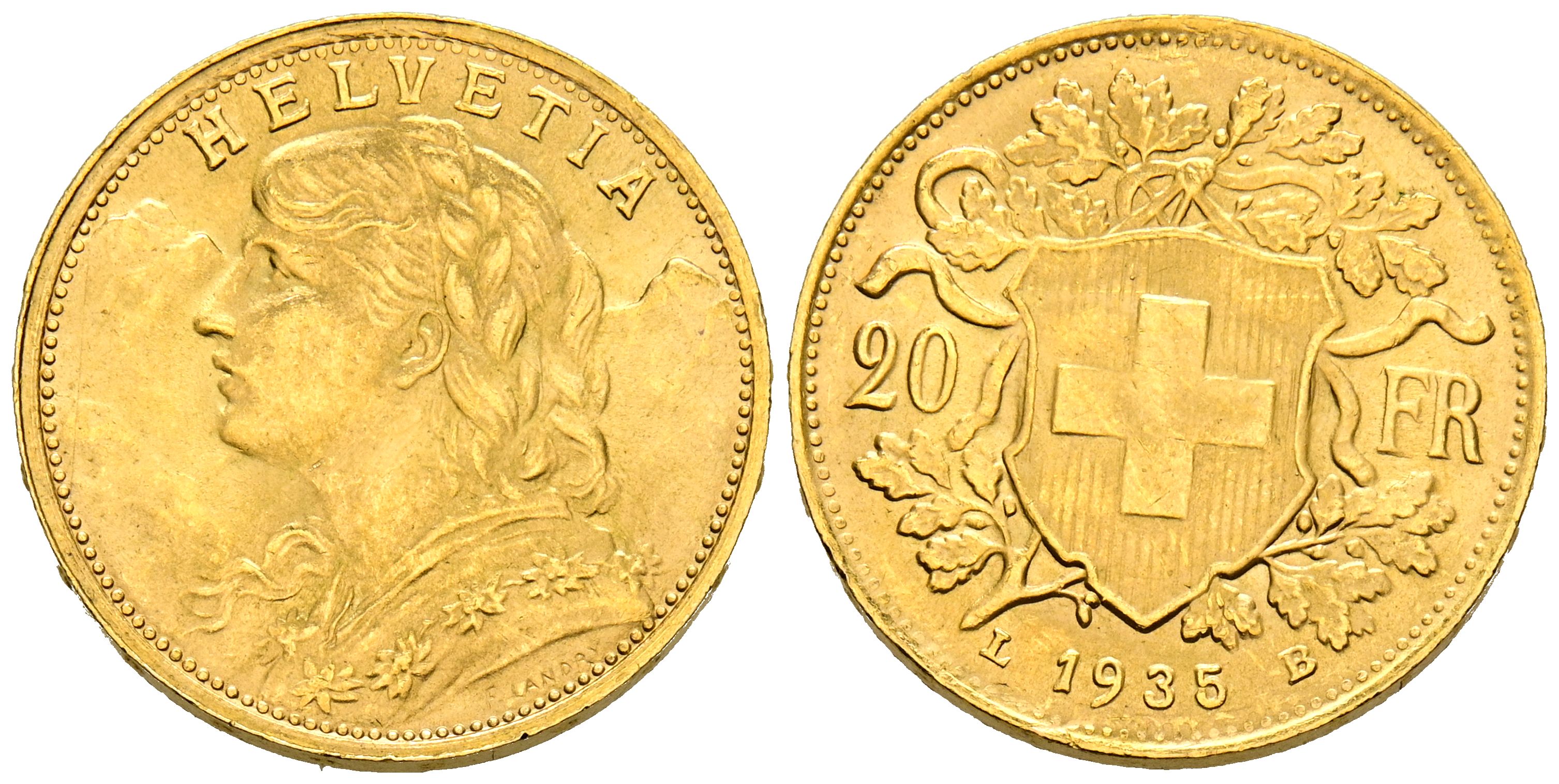 SUIZA. 20 Francos. (Au. 6,45g/21mm).1935. Berna B. (Km#35.1). EBC+.