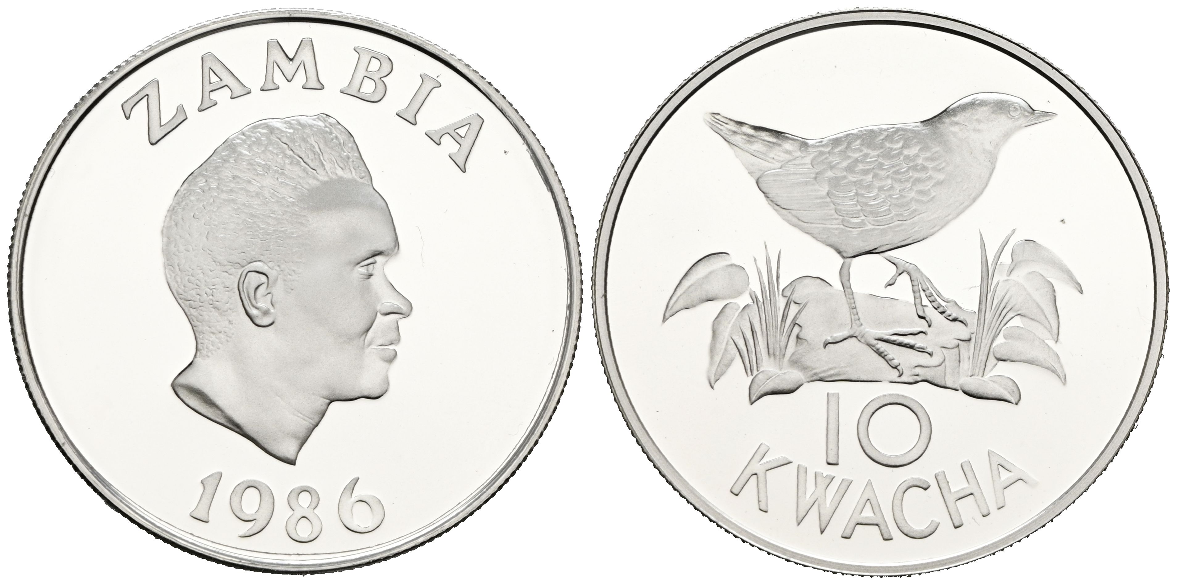 ZAMBIA. 10 Kwacha. (Ar. 27,46g/39mm). 1986. World Wildlife Fund (WWF). (Km#25) PROOF. Incluye cápsula.