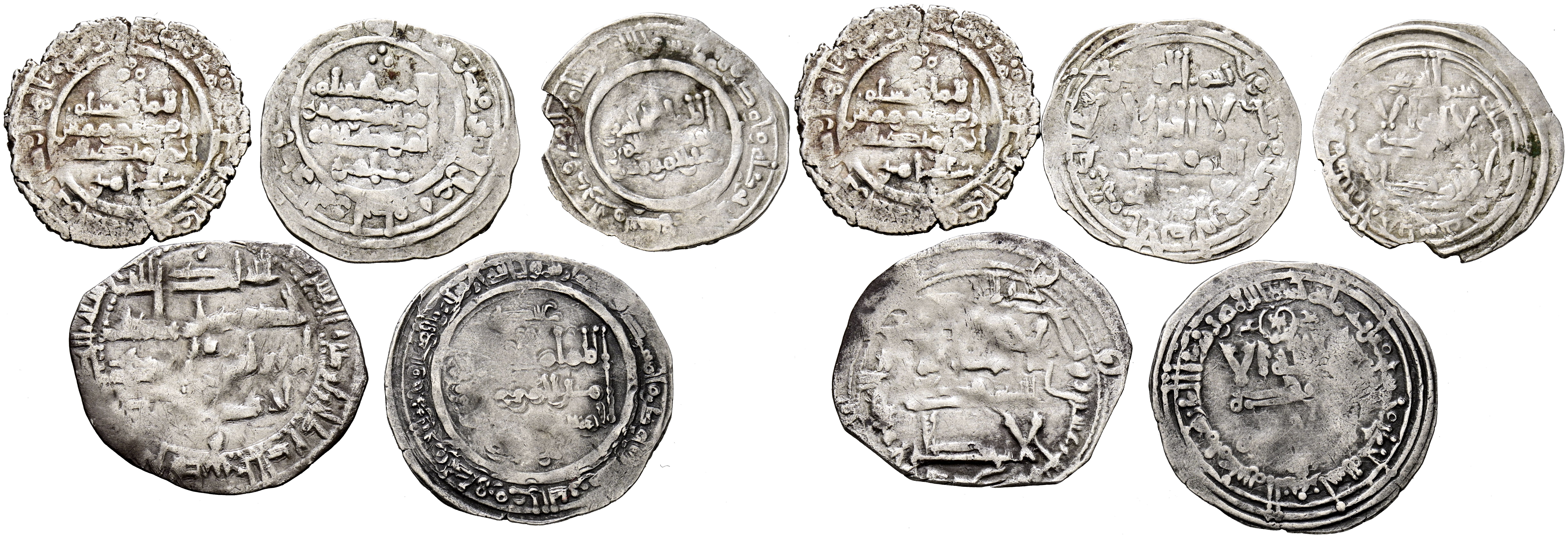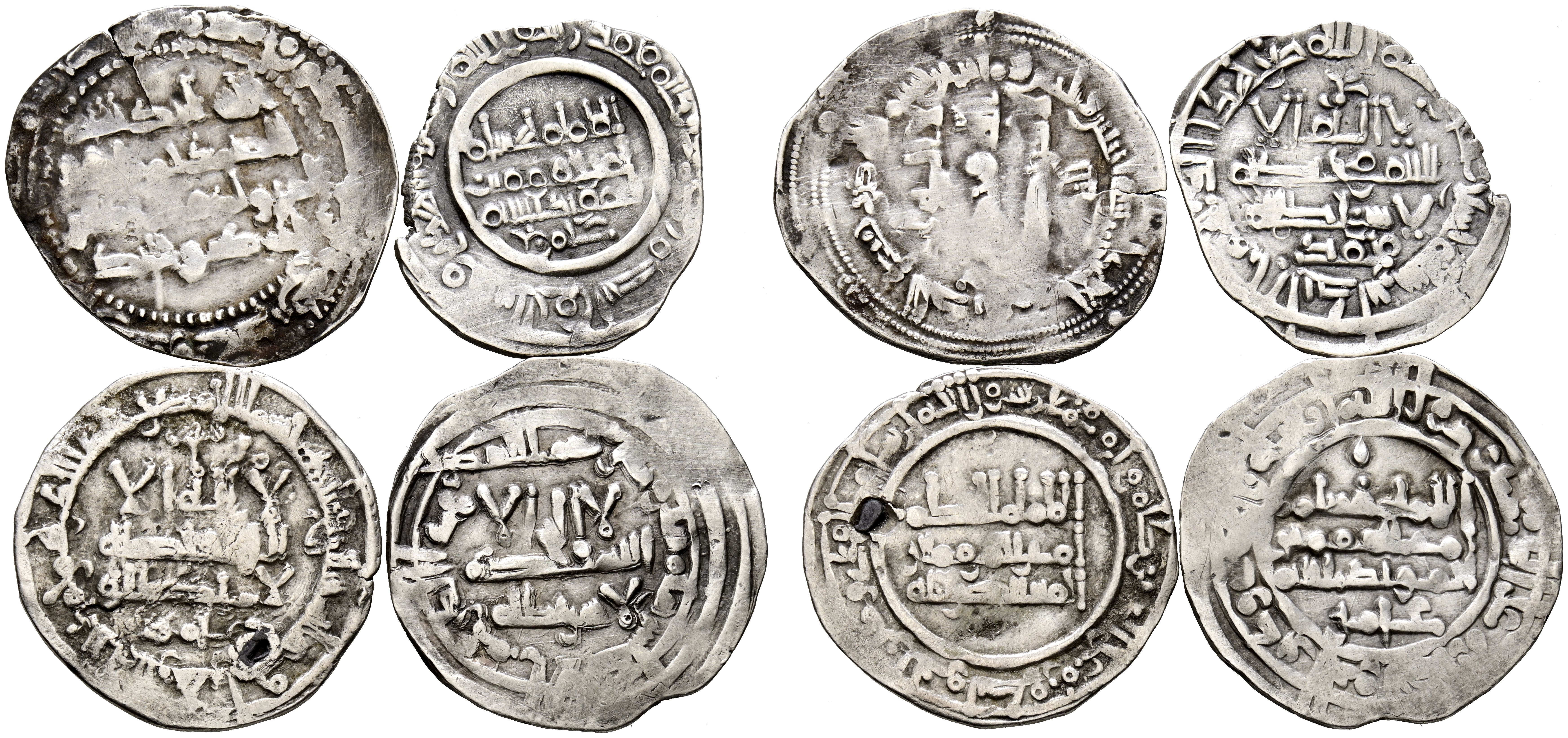 HISPANO ARABE. Interesante conjunto de 9 dirhams andalusíes de época emiral y califal. A destacar una amplia variedad de emires, años y estados de conservación. A EXAMINAR.