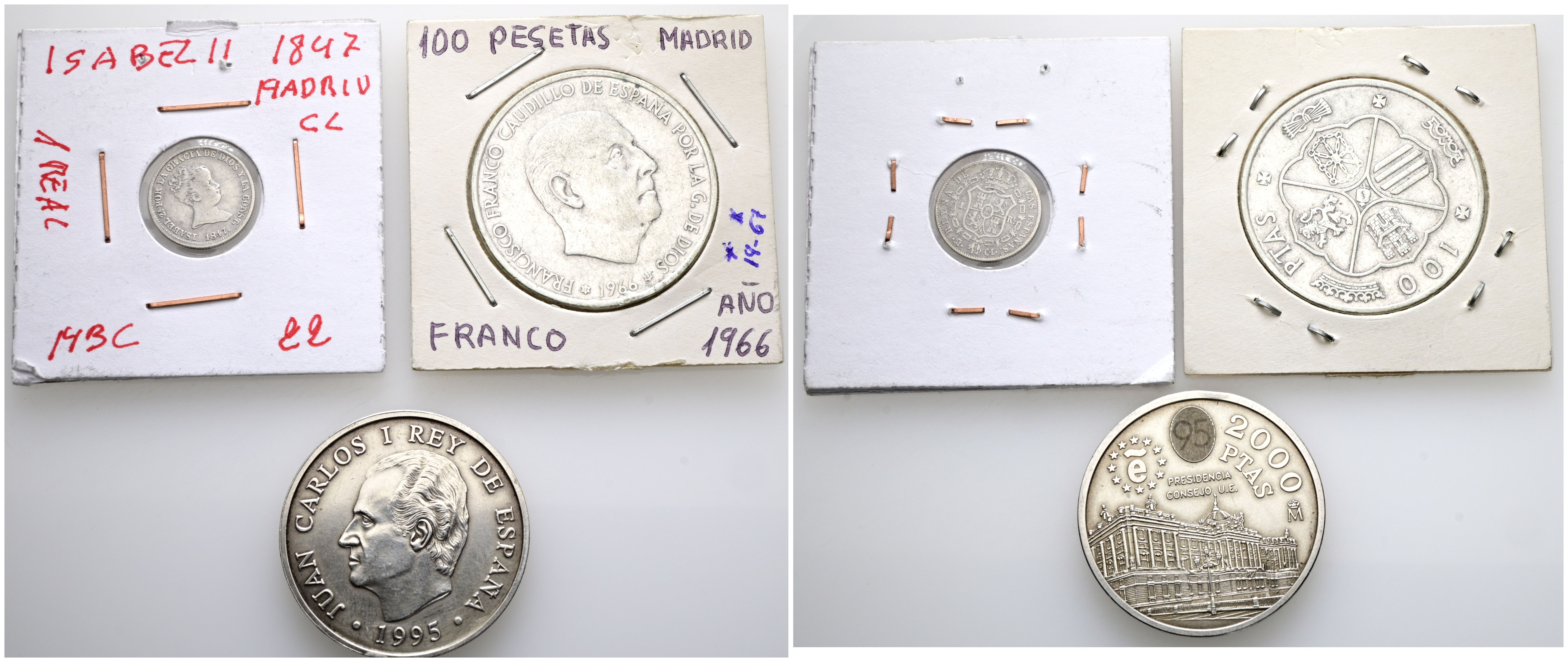 ESPAÑA. Interesante y variado conjunto de 49 piezas, la mayoría en plata y de diferentes módulos, con acuñaciones que abarcan desde la monarquía española al reinado de Juan Carlos I. En el conjunto destacan piezas de los Reyes Católicos, Carlos III, Fernando VII y Centenario de la Peseta entre otros. Diferentes estados de conservación. A EXAMINAR.
