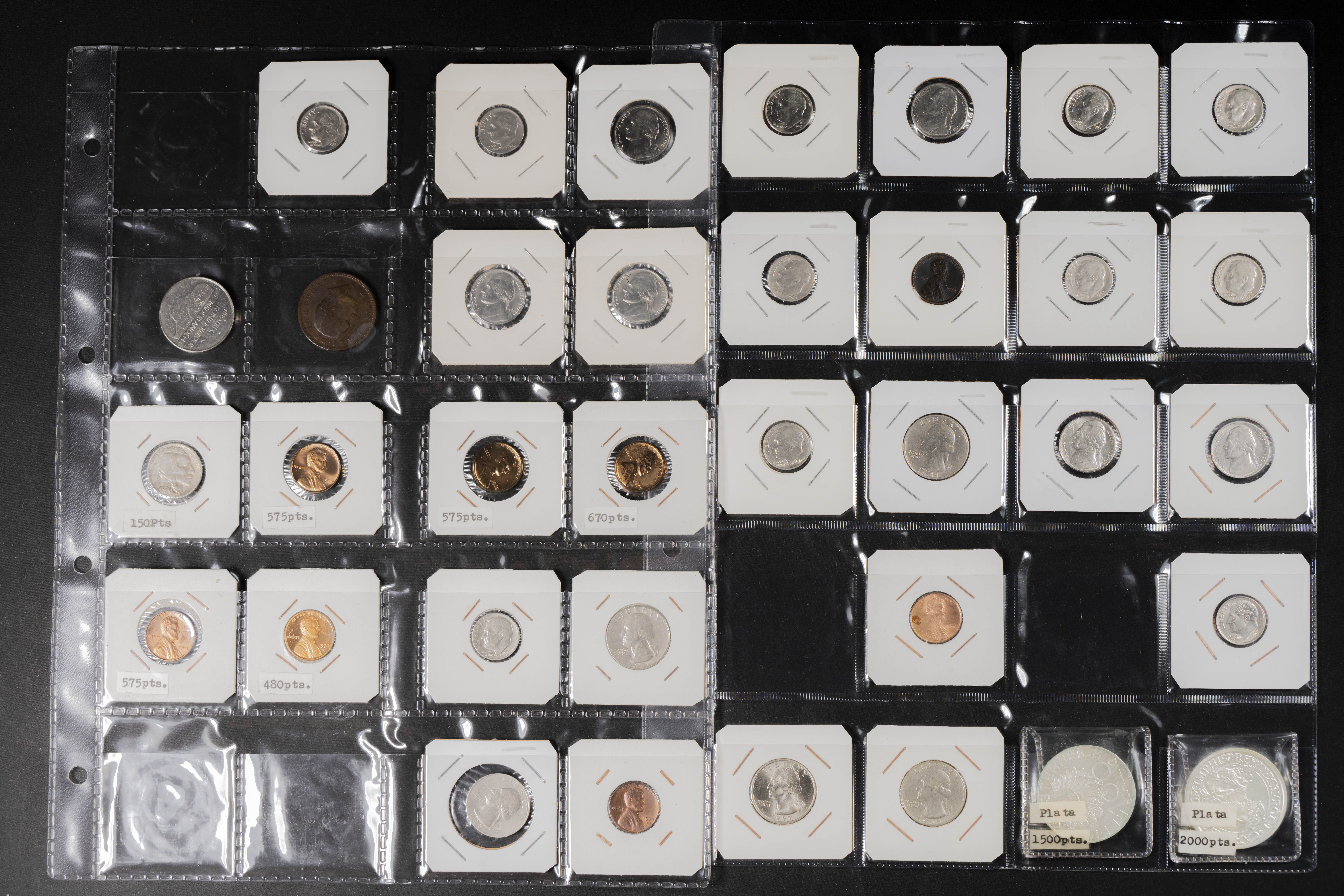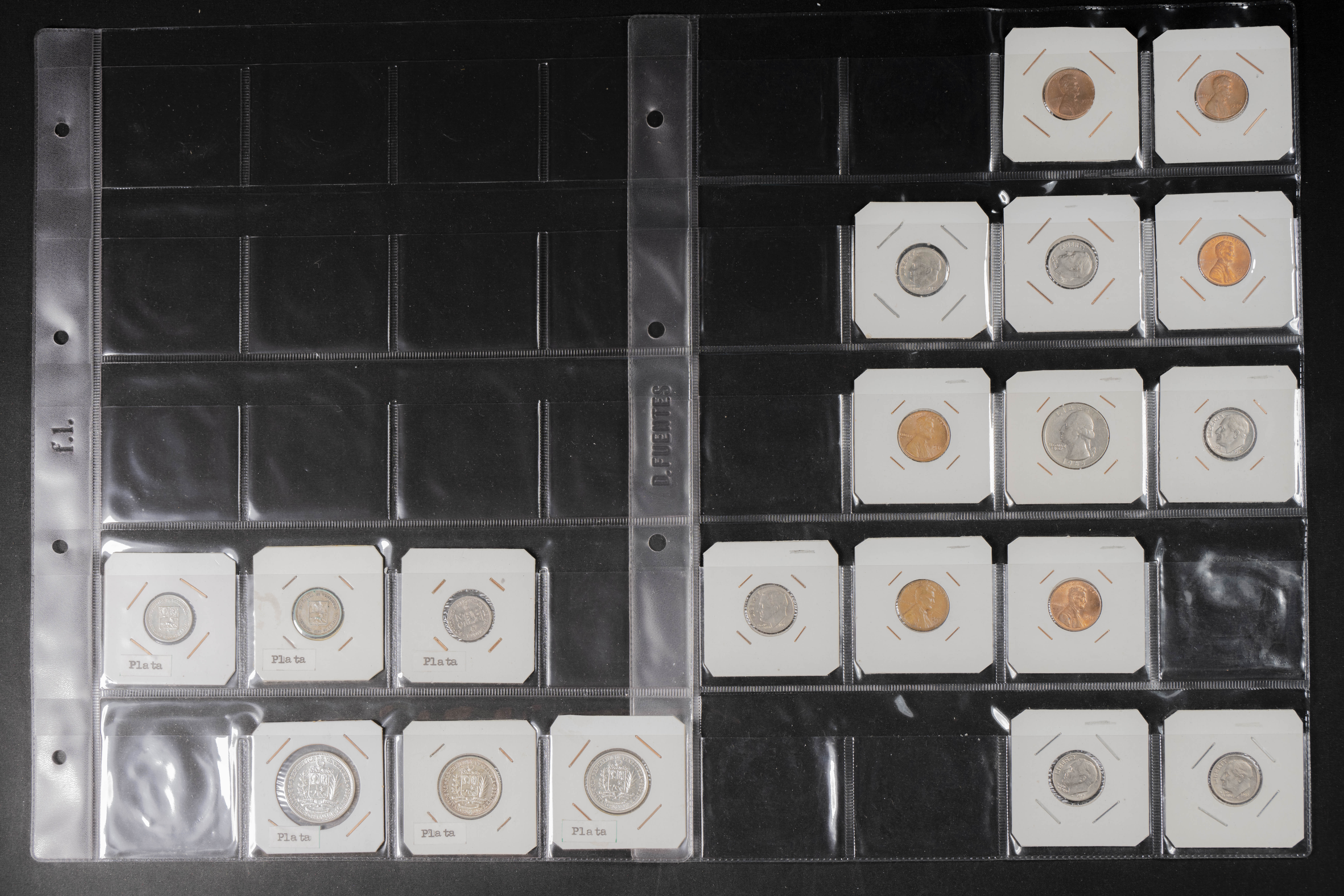 Interesante conjunto de alrededor de 200 monedas de diferentes países (destacando Estados Unidos especialmente) con una gran variedad de módulos, materiales (interesantes piezas en plata) y fechas e incluyendo una interesante selección de Silver Dollar así como algunos estuches conmemorativos. Diferentes estados de conservación. A EXAMINAR