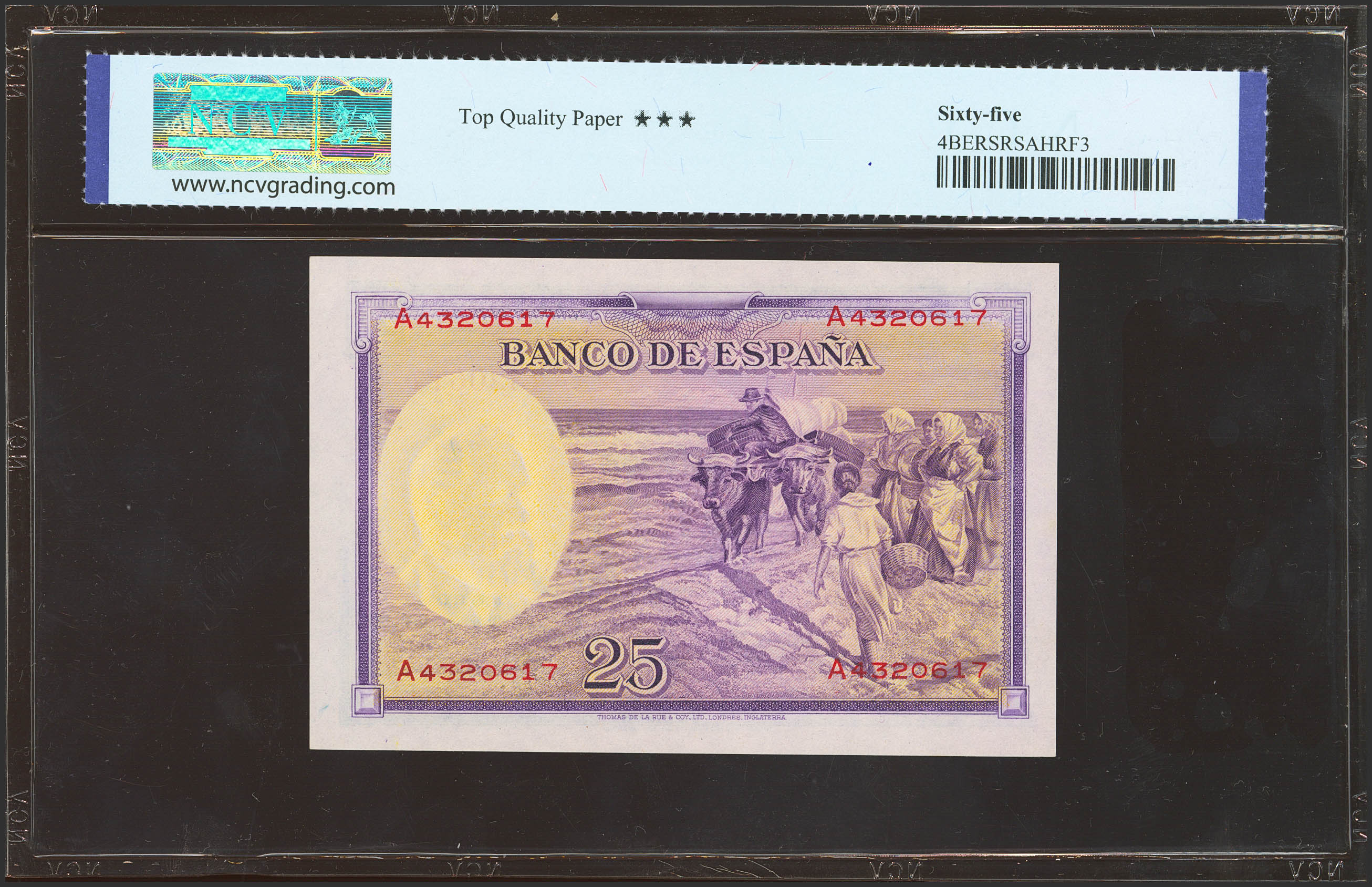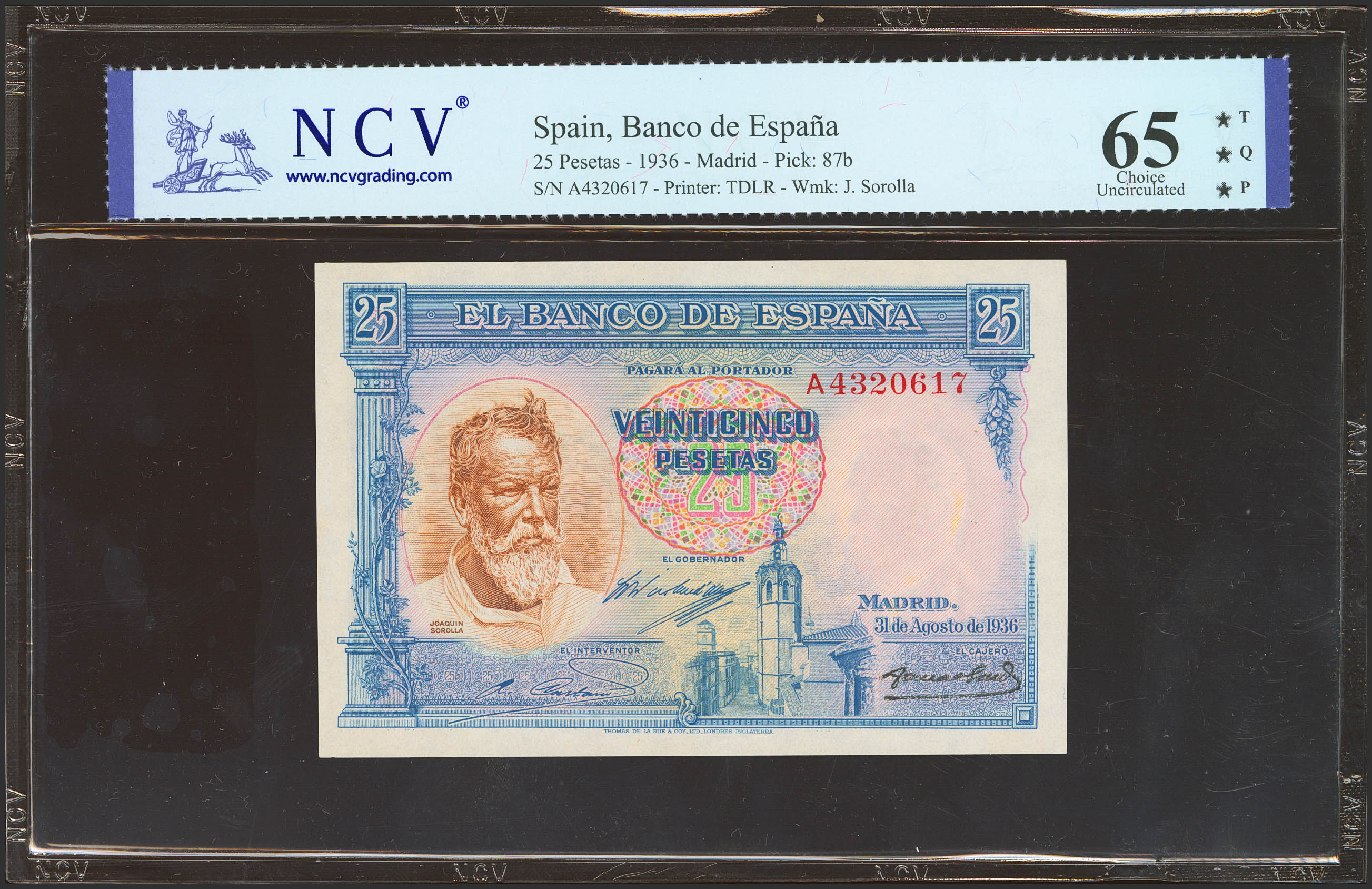 25 Pesetas. 31 de Agosto de 1936. Serie A. (Edifil 2023: 367a, Pick: 87b). Apresto original. Encapsulado NCV65TQP.