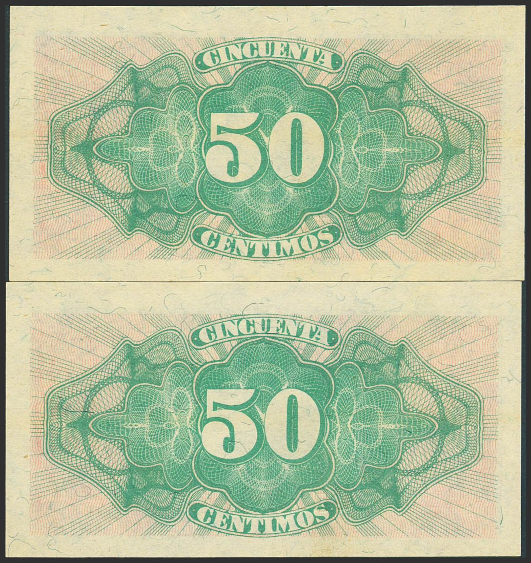 50 Céntimos. 1937. Pareja correlativa. Serie C, última serie emitida. (Edifil 2023: 391a). Apresto original. EBC+.
