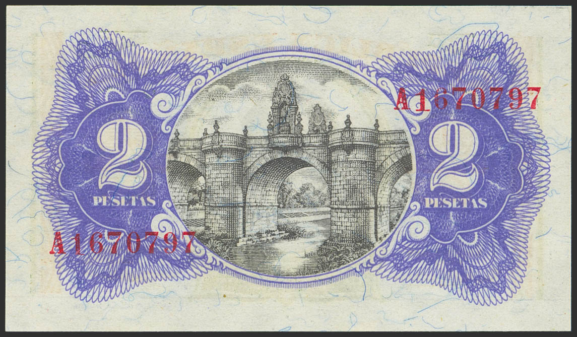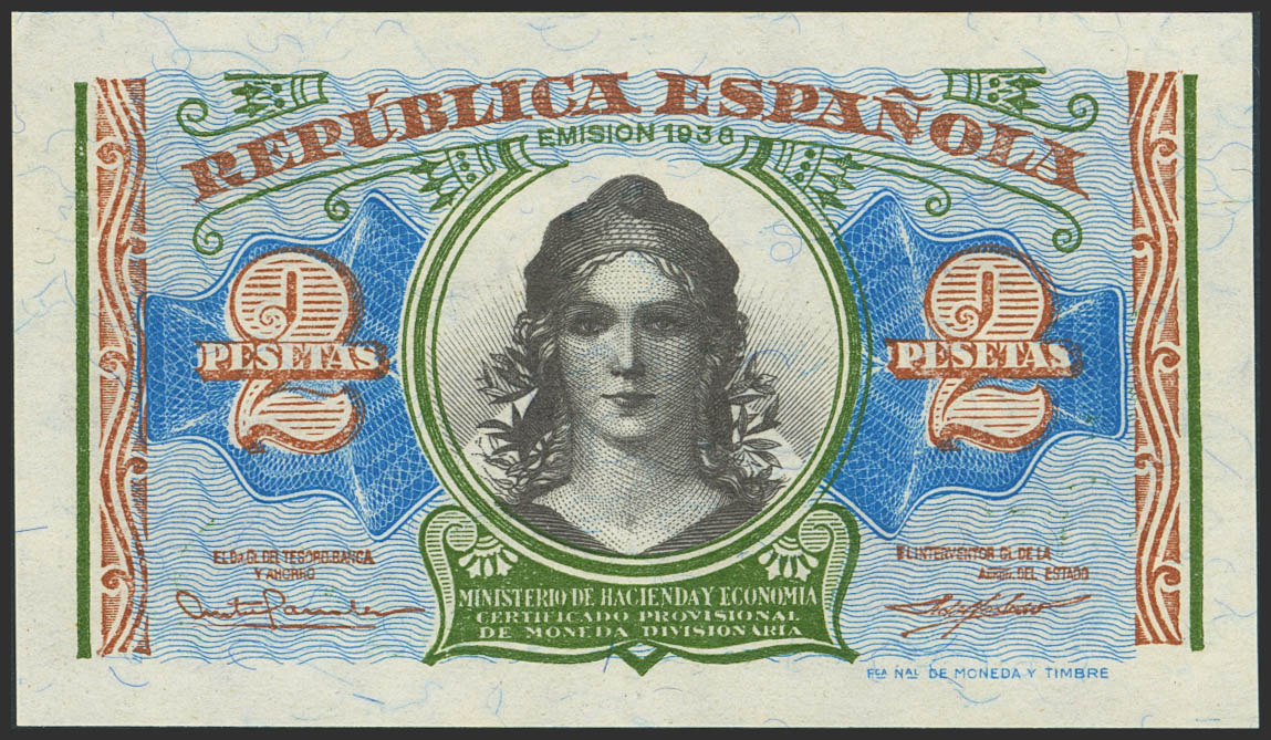 2 Pesetas. 1937. Ministerio de Hacienda. Serie A. (Edifil 2023: 393). Apresto original. SC.