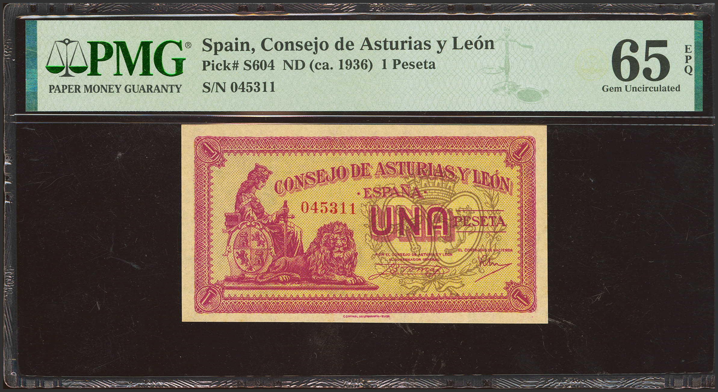 1 Peseta. 1937. Asturias y León. Sin serie. (Edifil 2021: 397. Pick: S604). Apresto original. SC. Encapsulado PMG65EPQ.