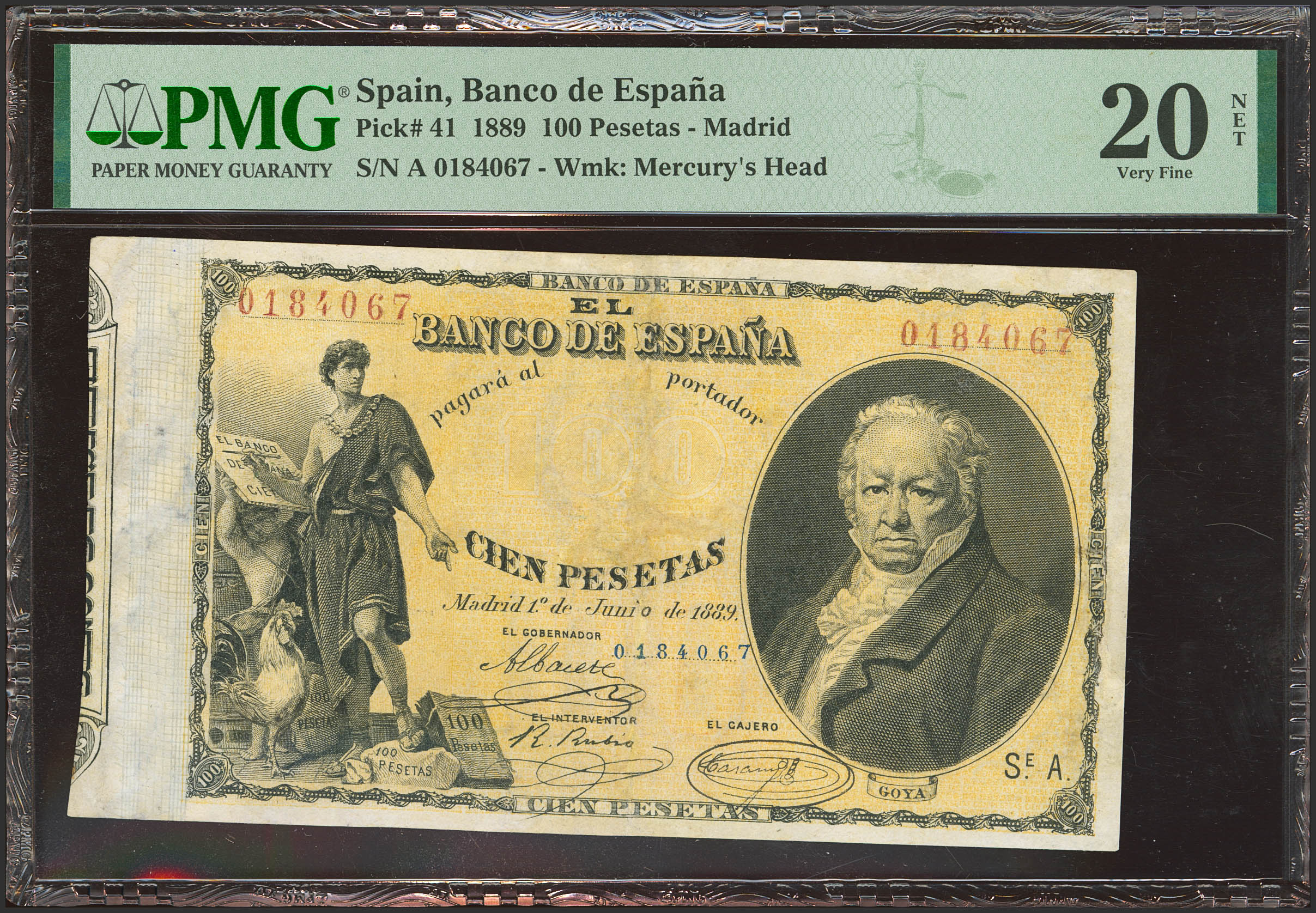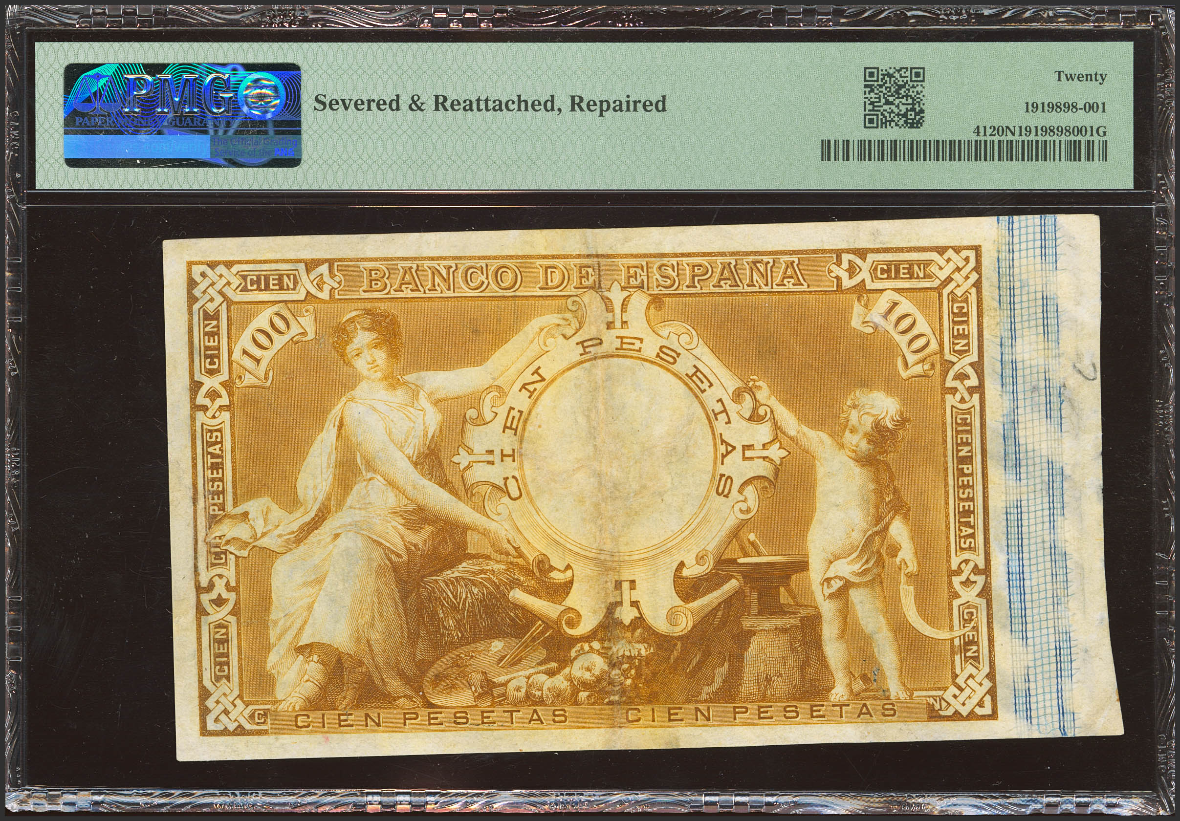 100 Pesetas. 1 de Junio de 1889. Serie A. (Edifil 2021: 299). Raro, reparado. MBC. Encapsulado PMG20NET (severed, reattached, repaired).