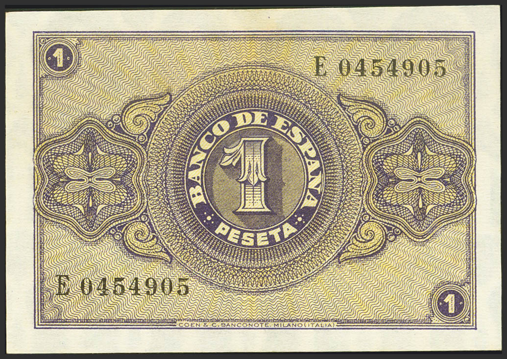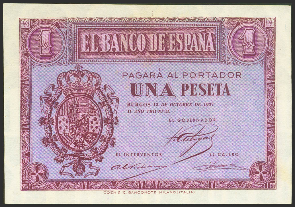 1 Peseta. 12 de Octubre de 1937. Serie E. (Edifil 2021: 425a). Apresto original. SC-.