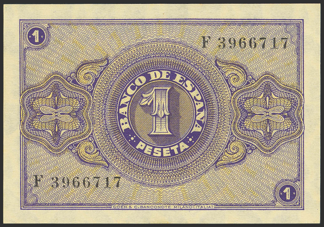 1 Peseta. 28 de Febrero de 1938. Serie F. (Edifil 2023: 427a). Conserva todo su apresto original. SC.