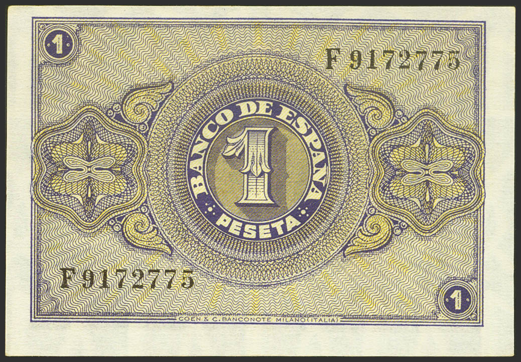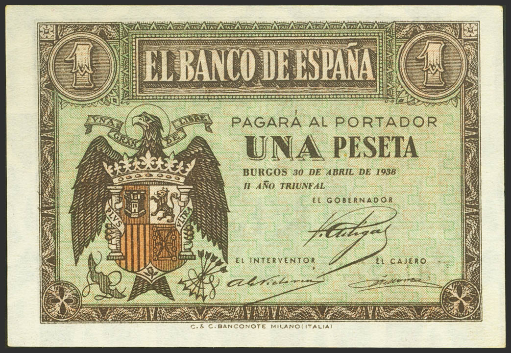 1 Peseta. 30 de Abril de 1938. Serie F. (Edifil 2021: 428a). Apresto original. SC.