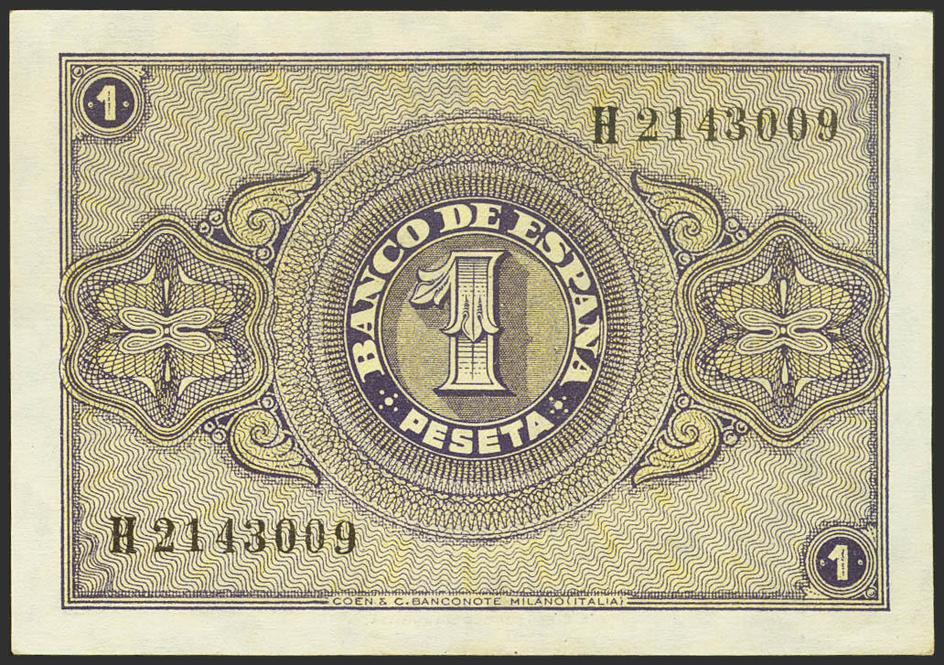 1 Peseta. 30 de Abril de 1938. Serie H. (Edifil 2021: 428a). Apresto original. SC-.