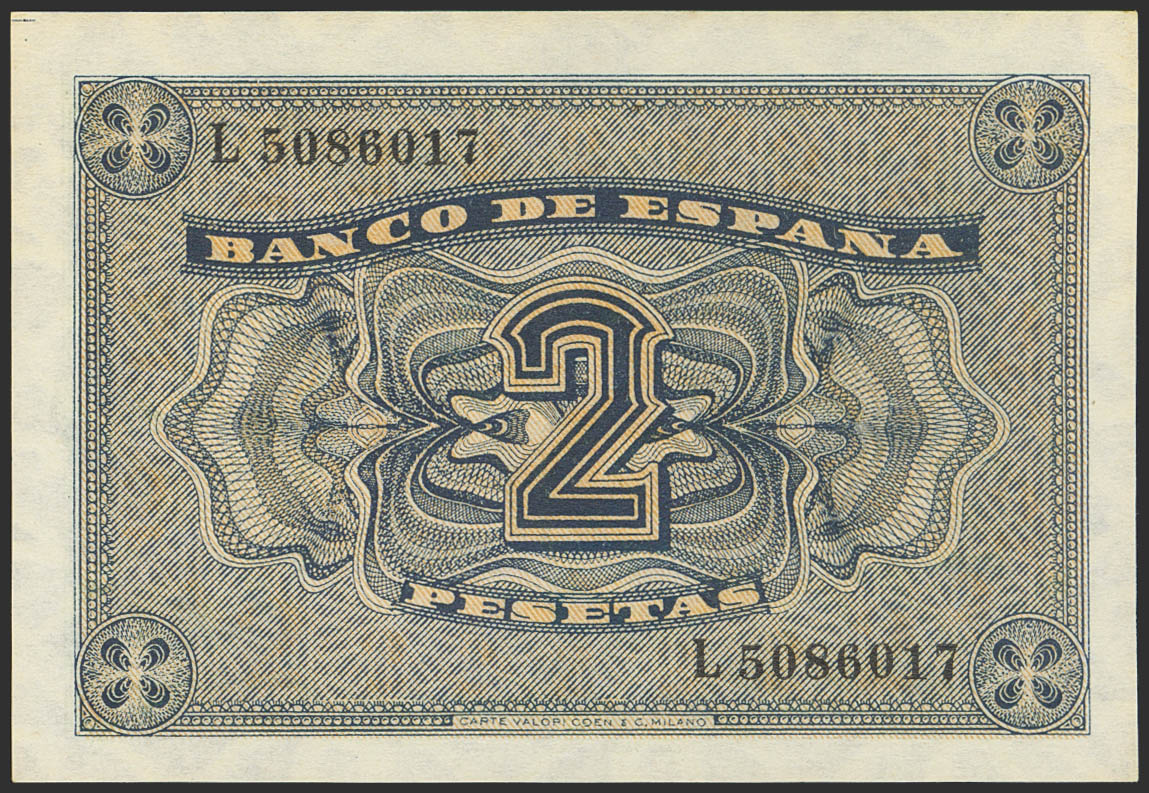 2 Pesetas. 30 de Abril de 1938. Serie L. (Edifil 2023: 429a). Conserva todo su apresto original. SC.