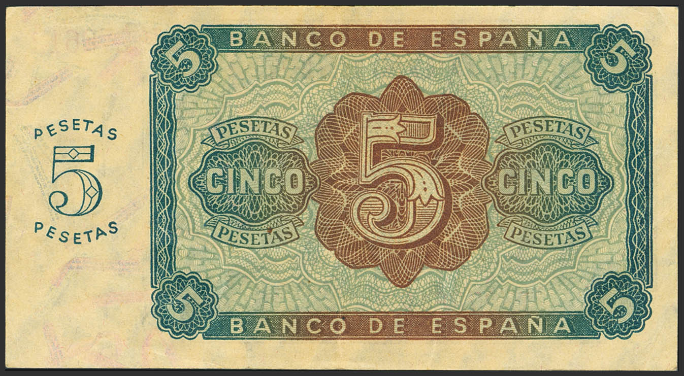 5 Pesetas. 10 de Agosto de 1938. Serie J. (Edifil 2021: 435a). Conserva todo su apresto original. EBC.
