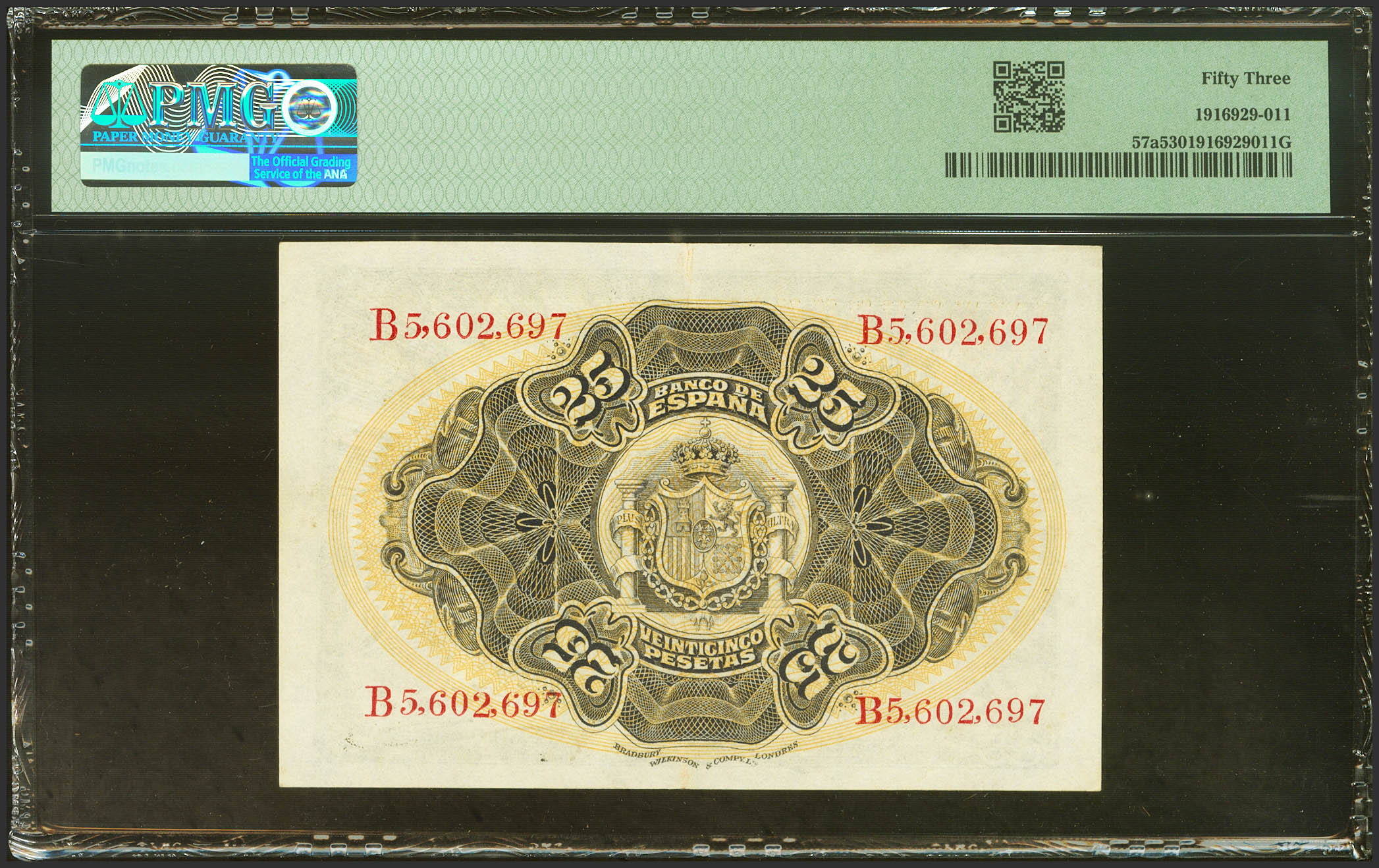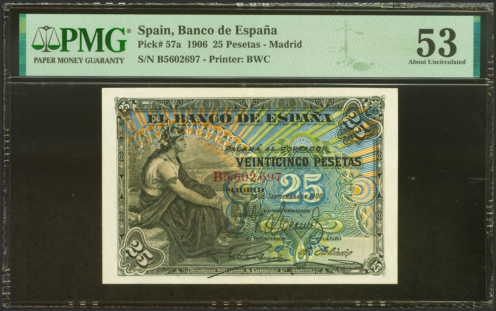 25 Pesetas. 24 de Septiembre de 1906. Serie B. (Edifil 2023: 314a, Pick: 57a). Inusual en esta calidad. EBC. Encapsulado PMG53.