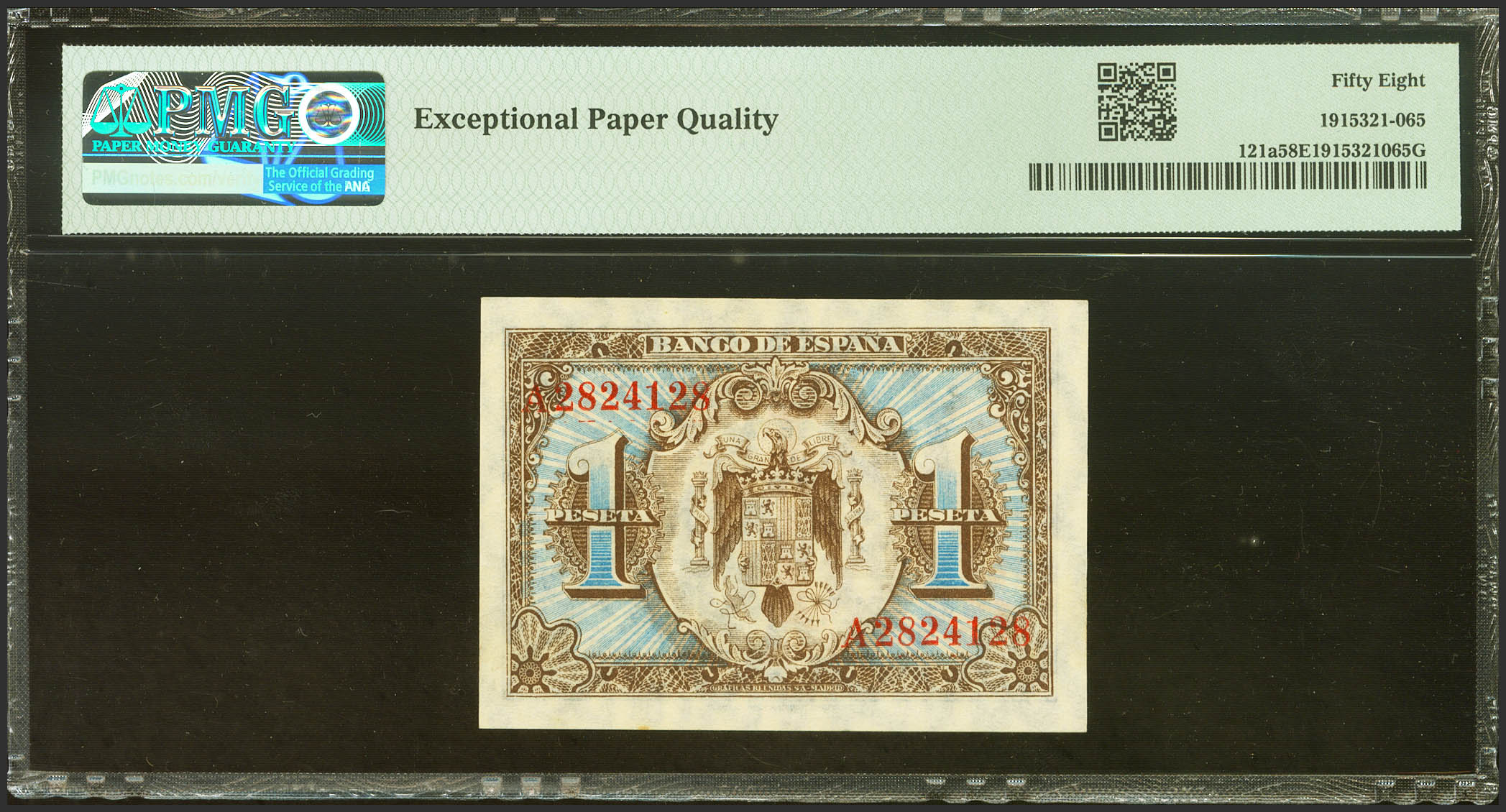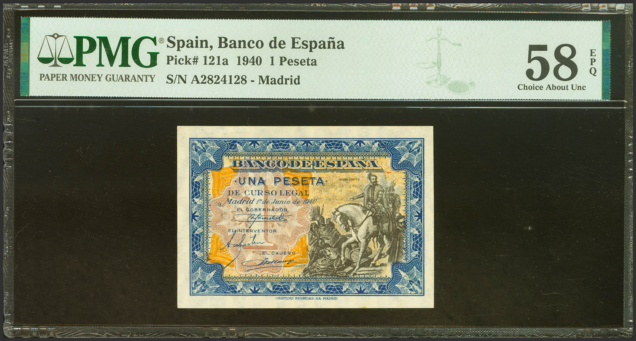 1 Peseta. 1 de Junio de 1940. Serie A. (Edifil 2023: 441a, Pick: 121a). Apresto original. EBC+++. Encapsulado PMG58EPQ.