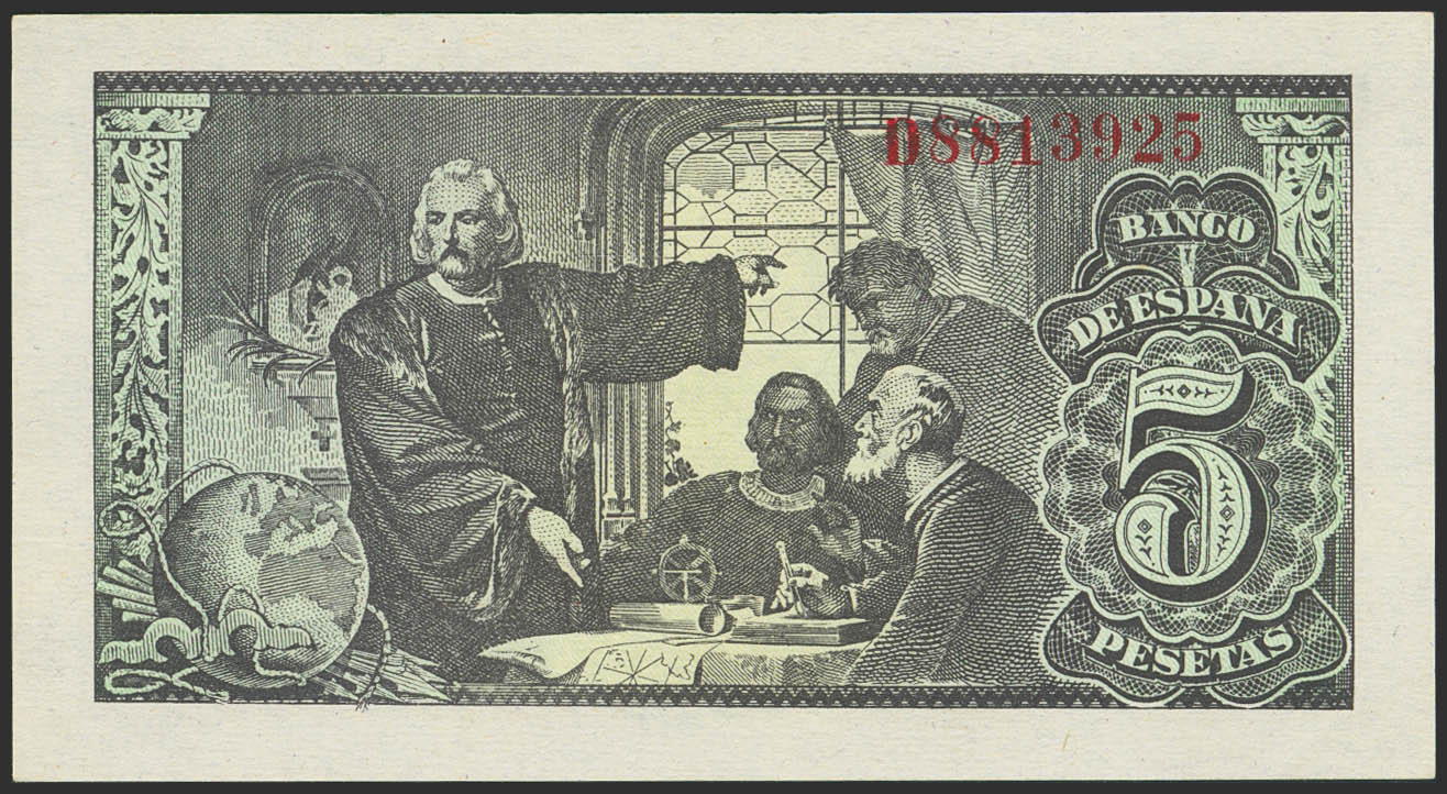 5 Pesetas. 13 de Febrero de 1943. Serie D. (Edifil 2023: 446a). Apresto original. SC-.