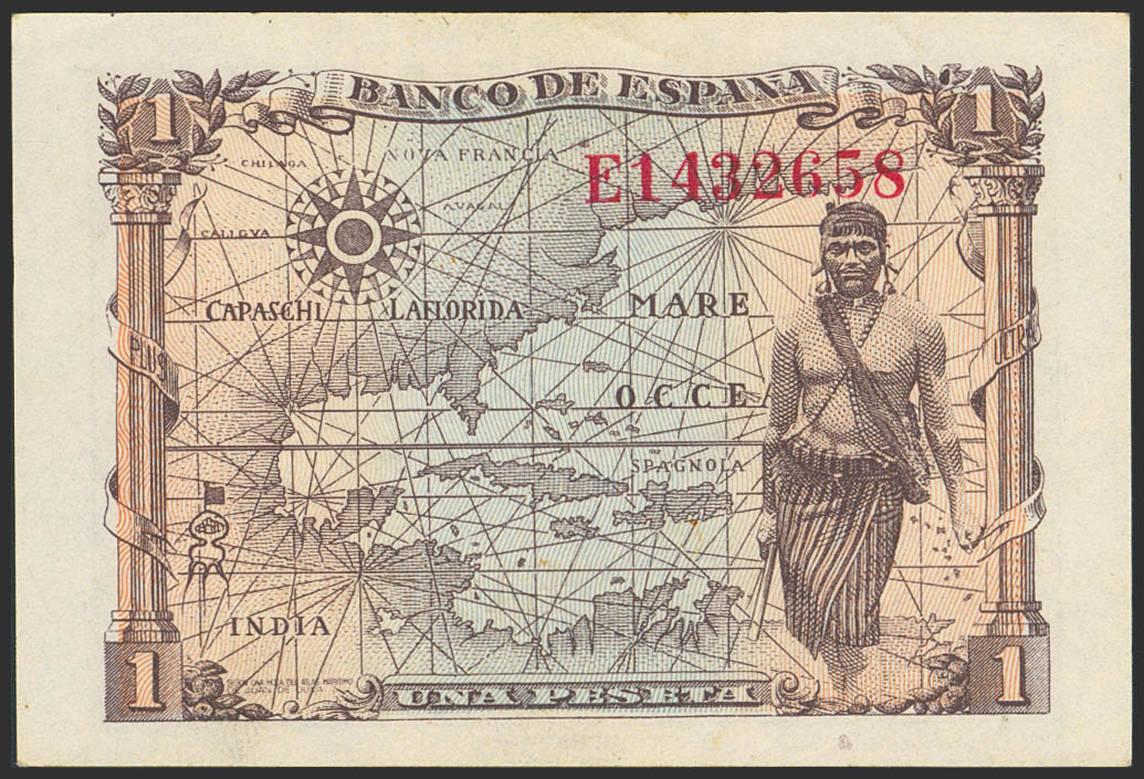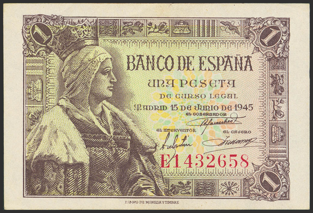 1 Peseta. 15 de Junio de 1945. Serie E. (Edifil 2023: 448a). Apresto original. SC-.