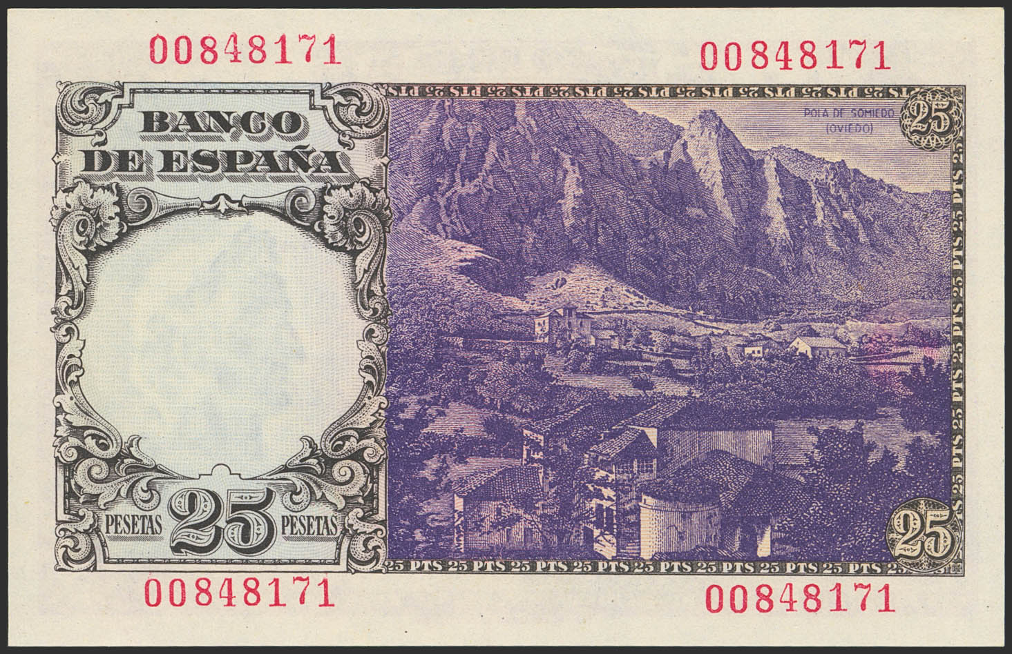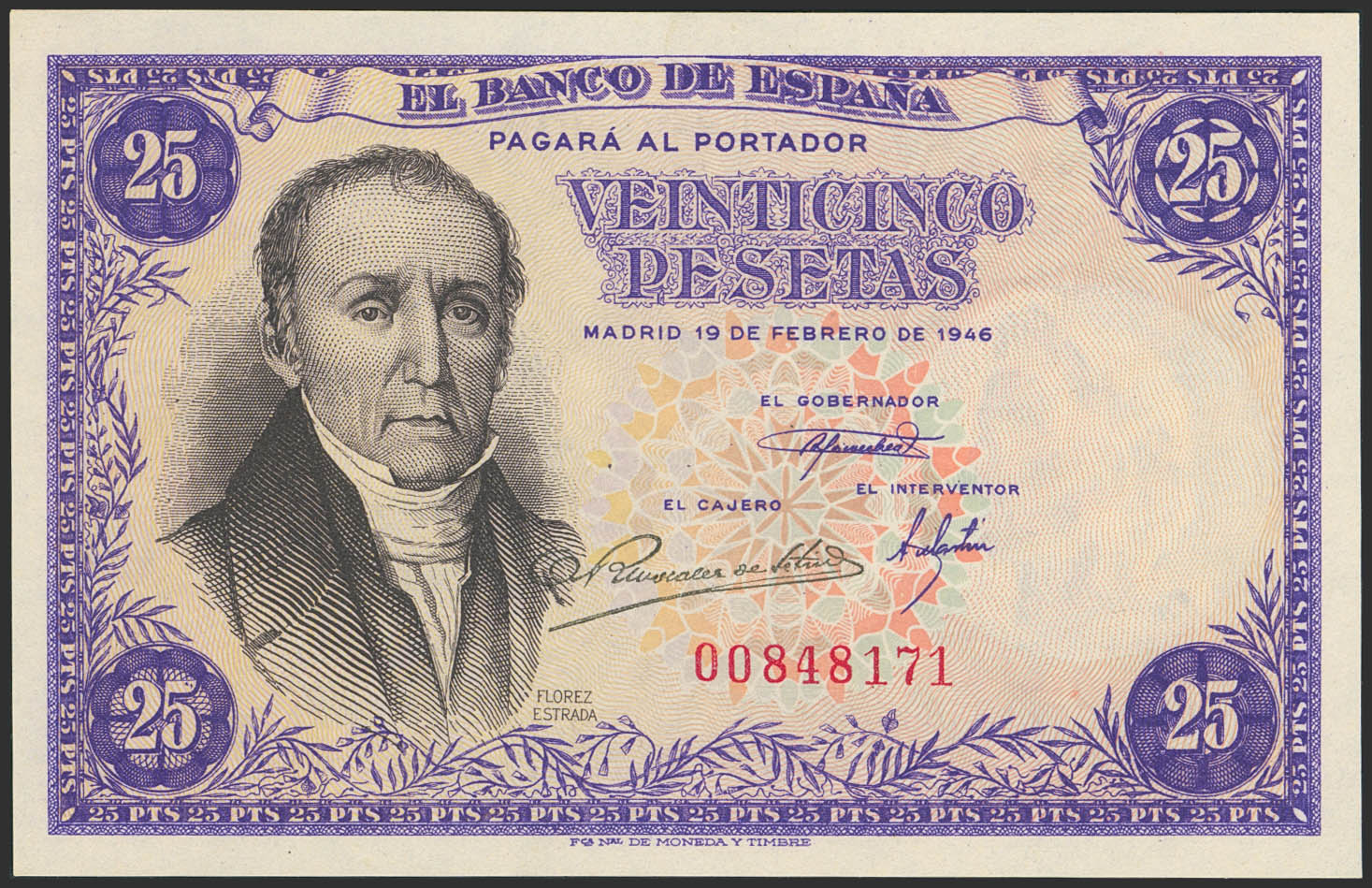 25 Pesetas. 19 de Febrero de 1949. Sin serie. (Edifil 2021: 450). EBC+.