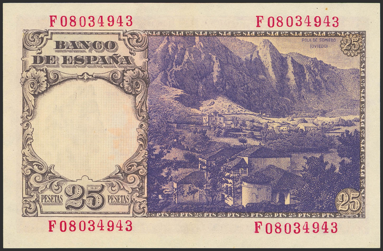 25 Pesetas. 19 de Febrero de 1946. Serie F. (Edifil 2021: 450a). Apresto original. SC.