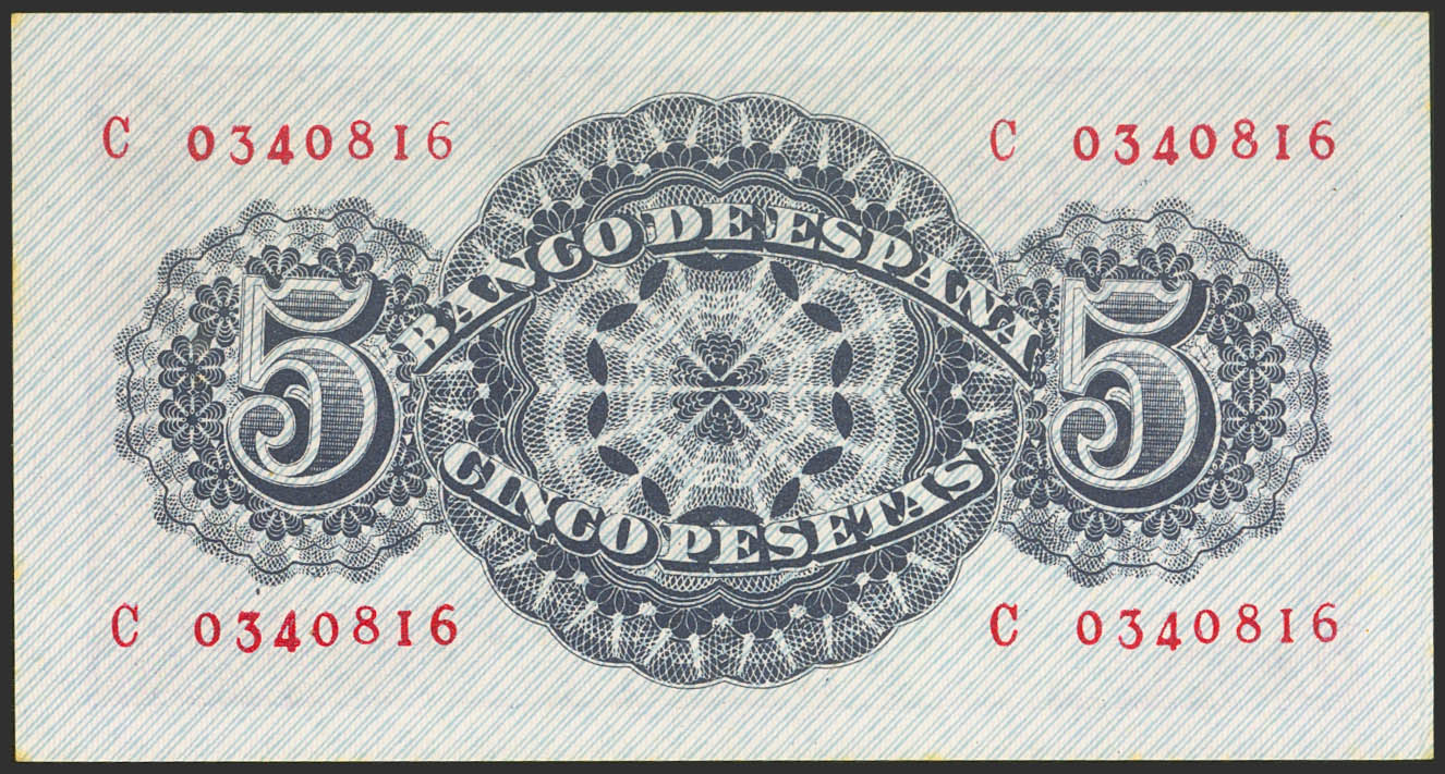 5 Pesetas. 12 de Abril de 1947. Serie C. (Edifil 2021: 454a). Conserva parte del apresto original y manchita del tiempo. SC-.