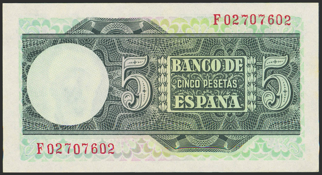5 Pesetas. 5 de Marzo de 1948. Serie F. (Edifil 2023: 455a, Pick: 136a). Apresto original. SC.