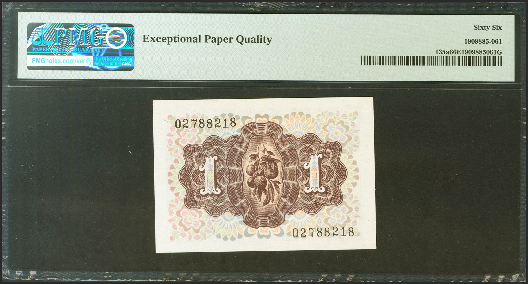1 Peseta. 19 de Junio de 1948. Sin serie. (Edifil 2021: 457, Pick: 135a). Raro en esta excepcional calidad, apresto original. SC. Encapsulado PMG66EPQ.