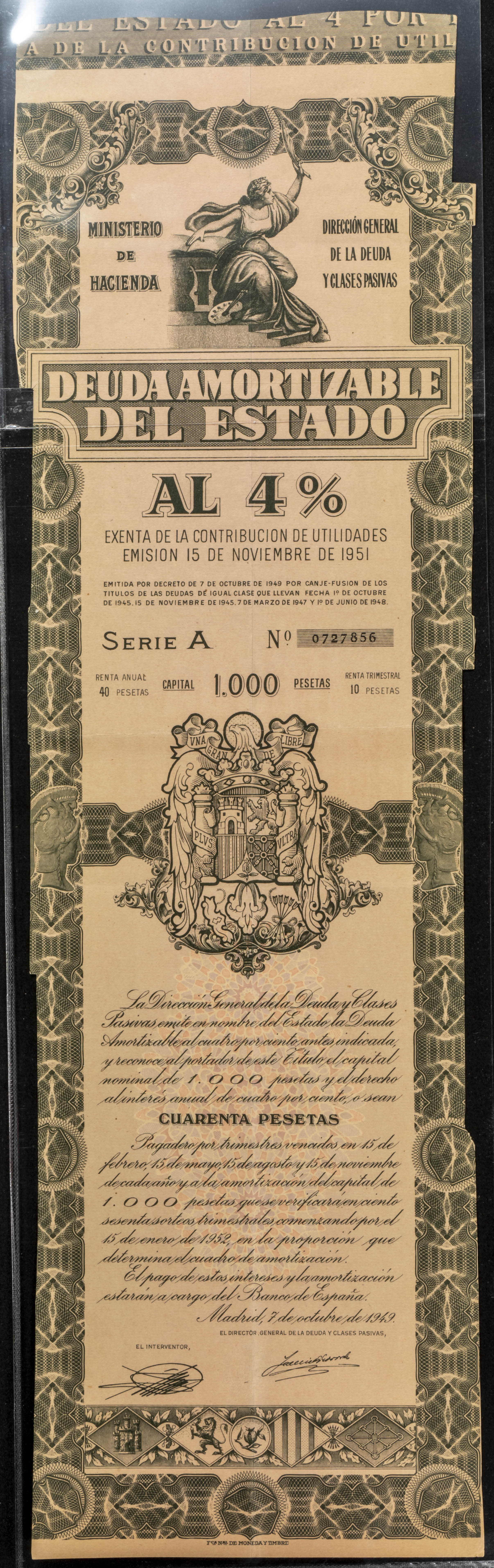 1000 Pesetas. Deuda Amortizable del Estado al 4%. 15 de Enero de 1951. EBC-.