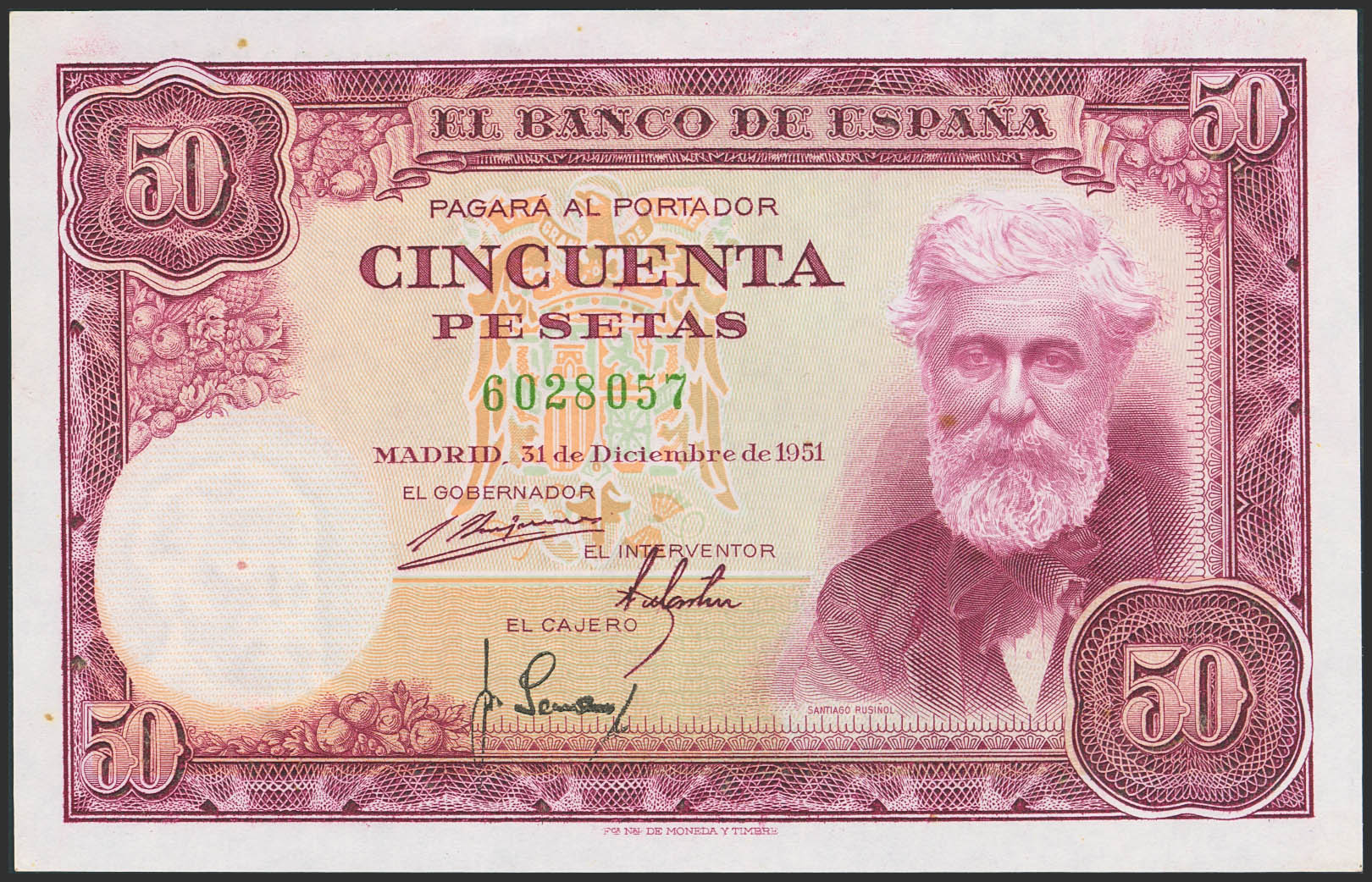 50 Pesetas. 31 de Diciembre de 1951. Sin serie. (Edifil 2023: 462). Apresto original. SC-.
