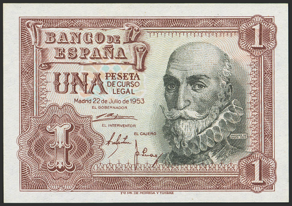 1 Peseta. 22 de Julio de 1953. Sin serie. (Edifil 2023: 465). Apresto original. SC.