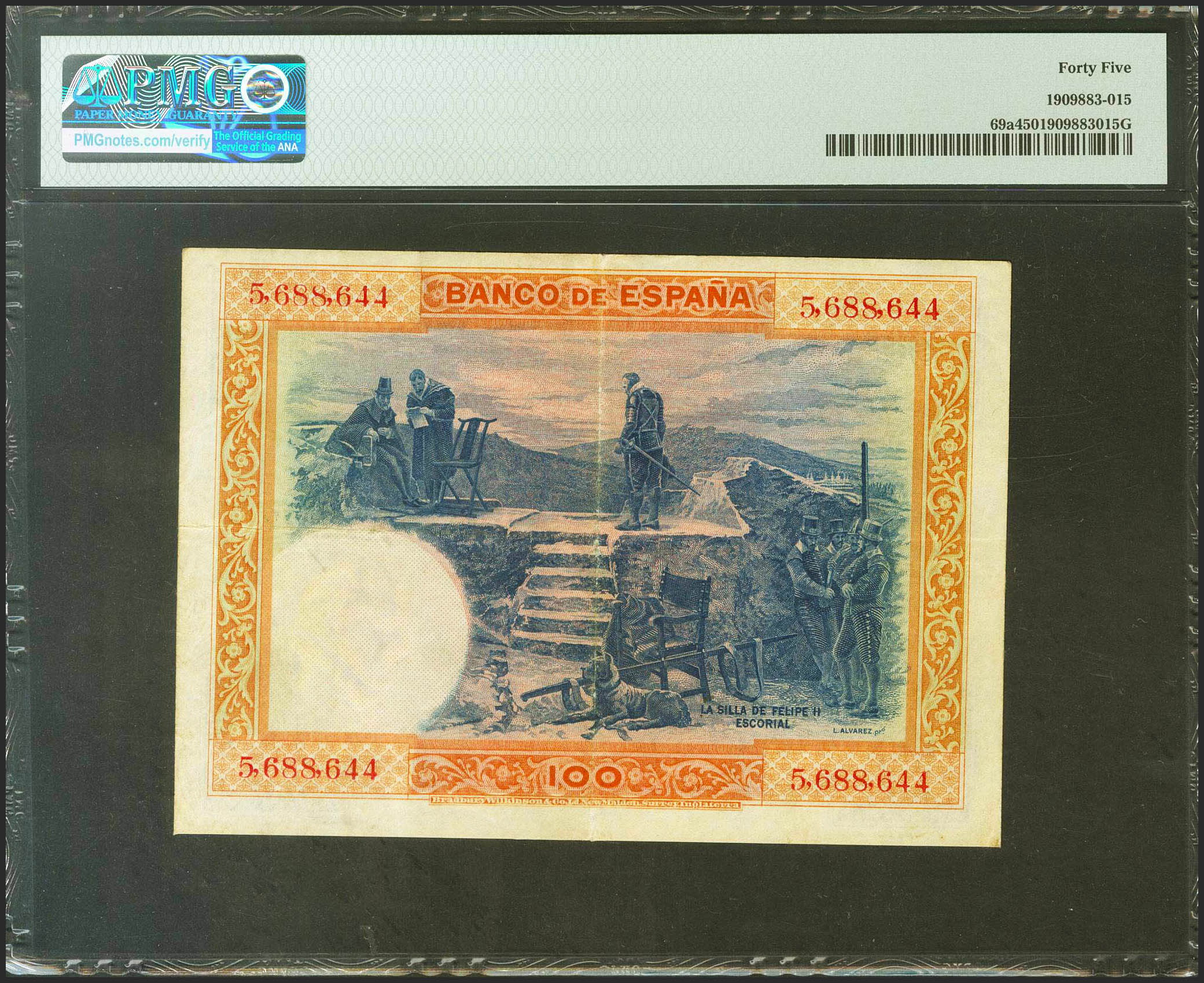 100 Pesetas. 1 de Julio de 1925. Sin serie. (Edifil 2021: 323, Pick: 69a). Inusual en esta calidad. EBC. Encapsulado PMG45.