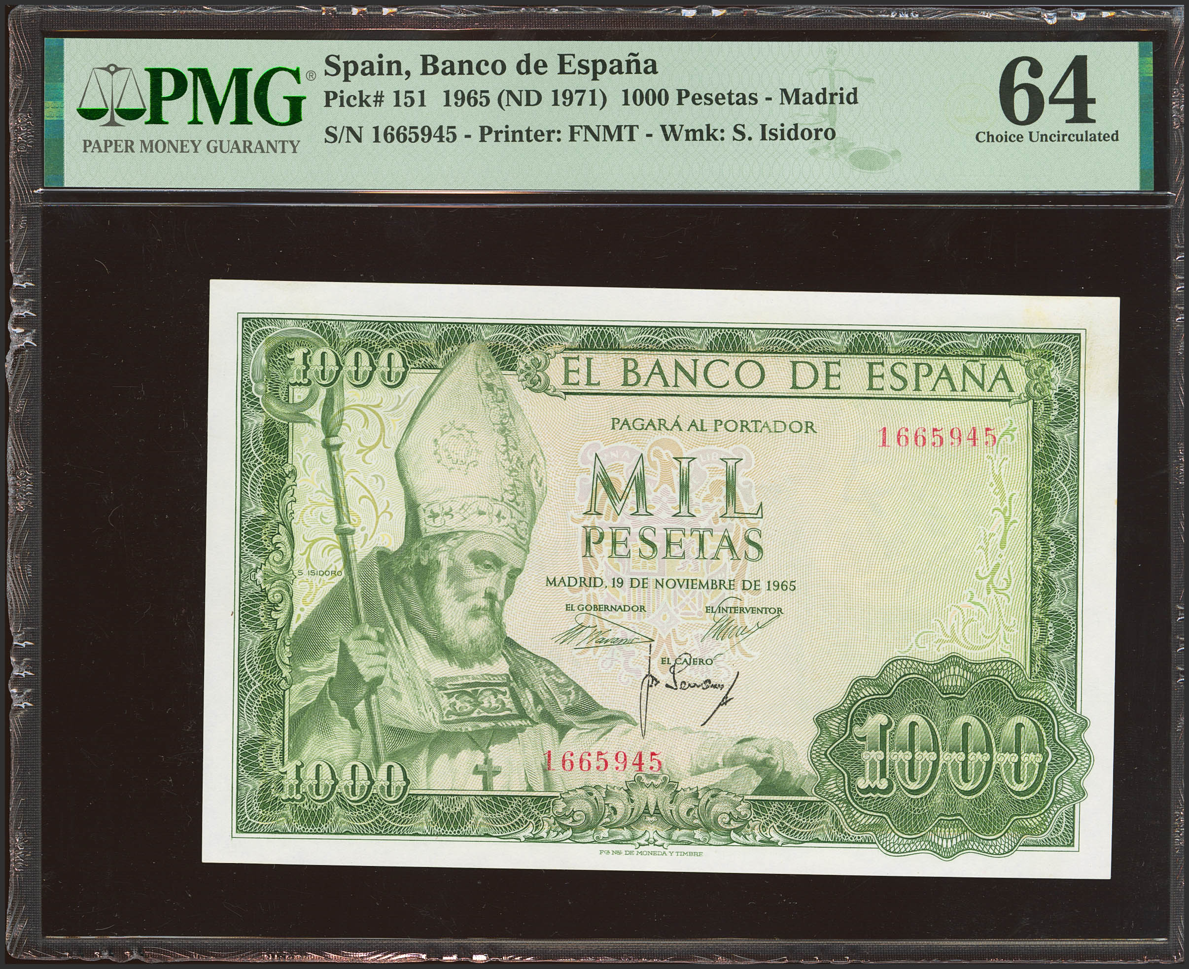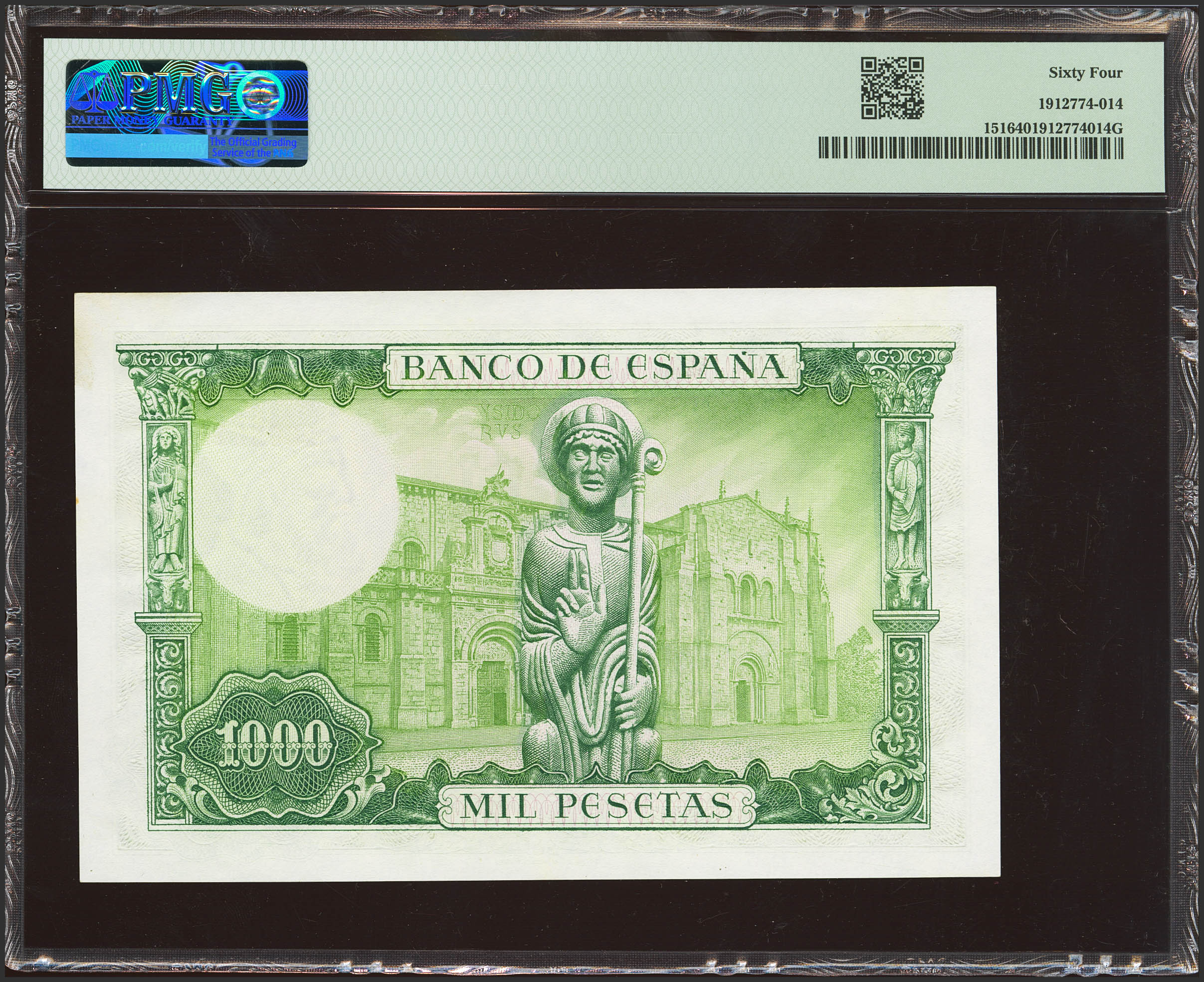 1000 Pesetas. 19 de Noviembre de 1965. Sin serie. (Edifil 2021: 471, Pick: 151). SC. Encapsulado PMG64.