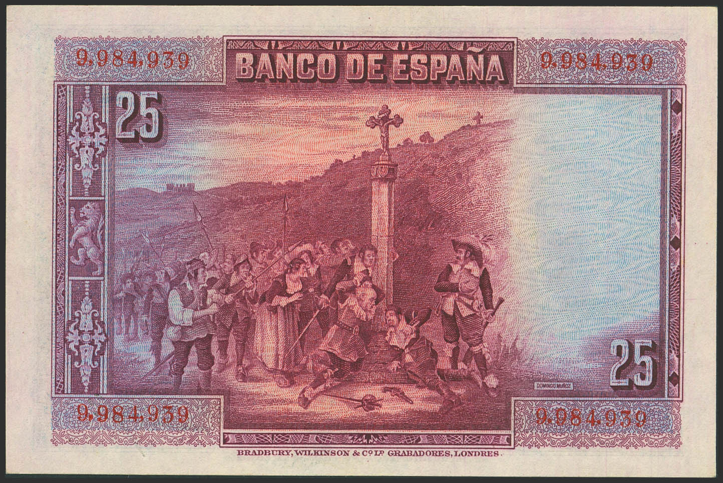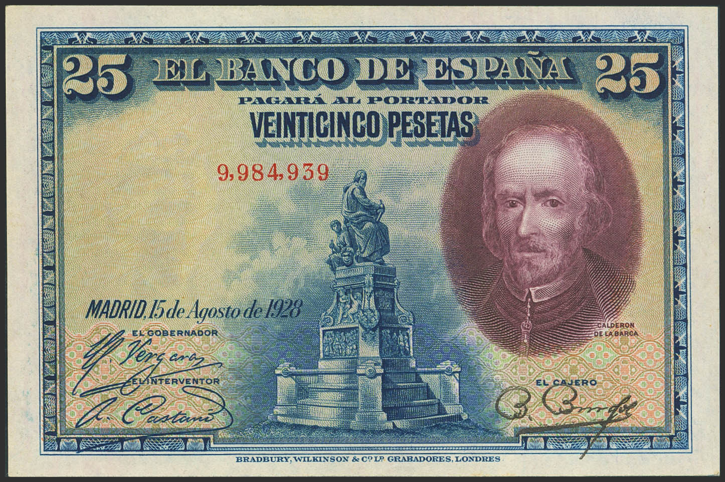 25 Pesetas. 15 de Agosto de 1928. Sin serie. (Edifil 2023: 328). Inusual, especialmente en esta calidad, conserva gran parte de su apresto original. EBC++.