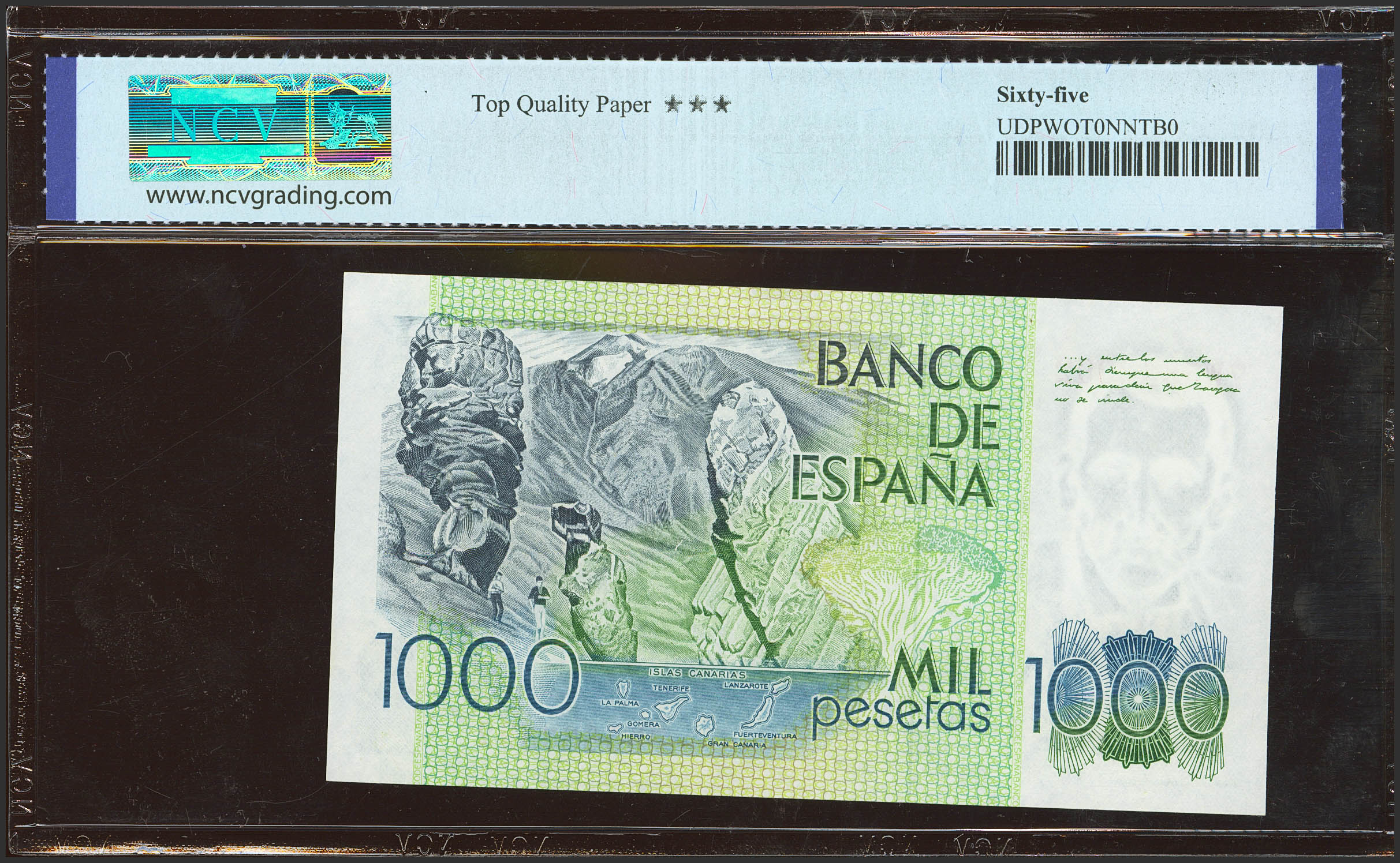 1000 Pesetas. 23 de Octubre de 1979. Serie 7W. (Edifil 2023: 477a, Pick: 158a). SC. Encapsulado NCV65TQP.