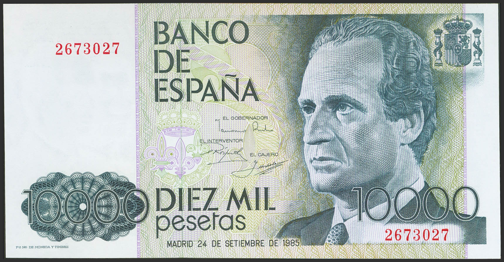 10000 Pesetas. 24 de Septiembre de 1985. Sin serie. (Edifil 2023: 481). SC-.